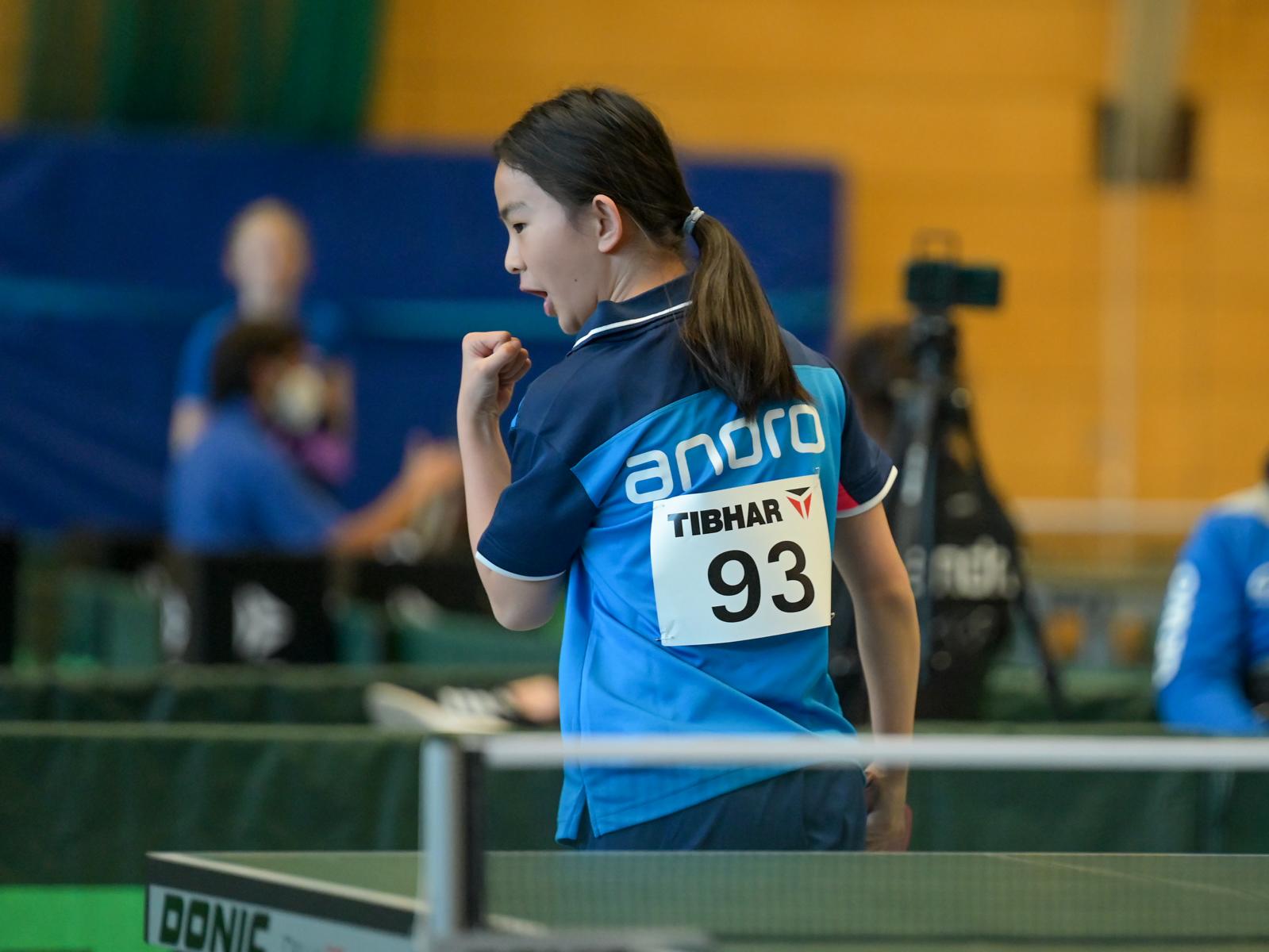 Ziemlich spannend machte es dagegen Luisa Düchting, die durch zwei Niederlagen in der ersten Gruppenphase etwas überraschend nur den dritten Platz belegte. Für Luisa bedeutete dies, dass sie nun in der Zwischenrunde beide Spiele gewinnen musste, um sich das Ticket zum Top 24 zu sichern. Nachdem Luisa das erste Spiel gegen Gao aus Bayern sicher mit 3:0 nach Hause brachte, sollte es im zweiten Spiel gegen die Abwehrspielerin Lena Gottschlich (TTVN) dramatisch spannend werden. Die Niedersächsin ging mit 2:1 in Führung und der vierte Satz musste in die Verlängerung gehen. Diesen konnte Luisa sich nach Abwehr von Matchbällen mit 19:17 denkbar knapp sichern. Auch im Entscheidungssatz konnte sich keine der beiden Spielerinnen eine Führung erspielen, so dass auch dieser nur mit zwei Bällen unterschied entschieden wurde. Zum Glück behielt Luisa hier mit 11:9 die Oberhand.
