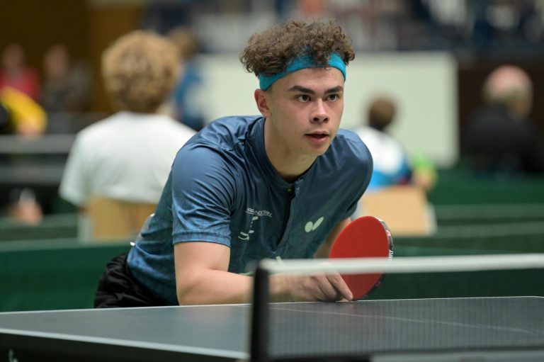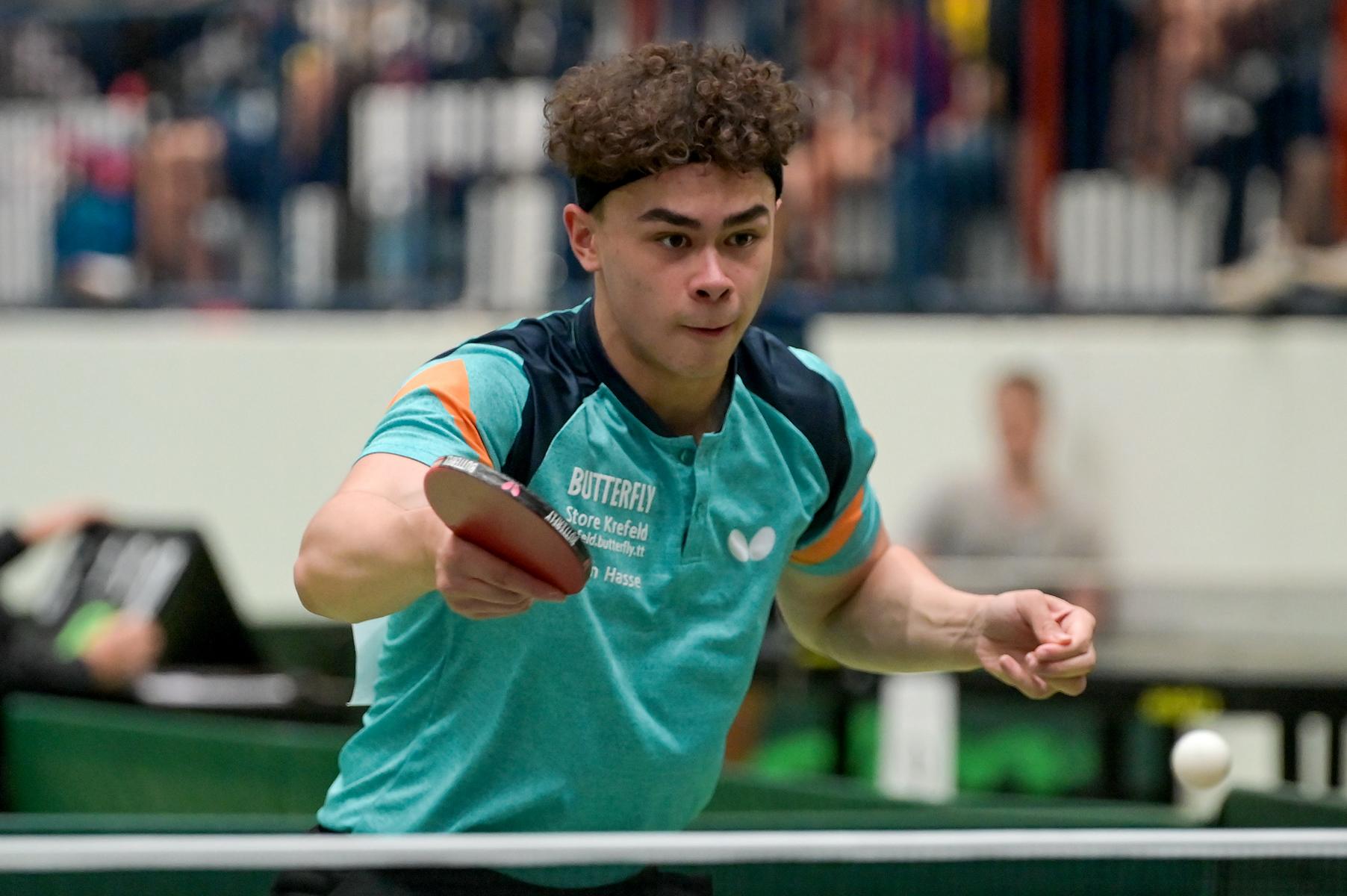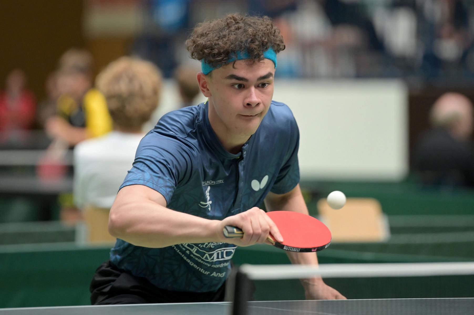 Bei den Jungen13 hatte wohl niemand so richtig Tom Henseler auf dem Schirm. Schon in der ersten Runde rang Tom den Mitfavoriten Dorian Lheriau mit 3:2 nieder. Dieser Sieg gab dem Linkshänder Tom viel Sicherheit und Selbstvertrauen, so dass er sich mit gutem Aufschlagspiel und unangenehmen Linkshändertopspins immer mehr ins Turnier reinspielte. Am Ende verlor er kein einziges Match und war der verdiente Sieger, der damit auch das Ticket zum Top48 der Jugend15 löste.