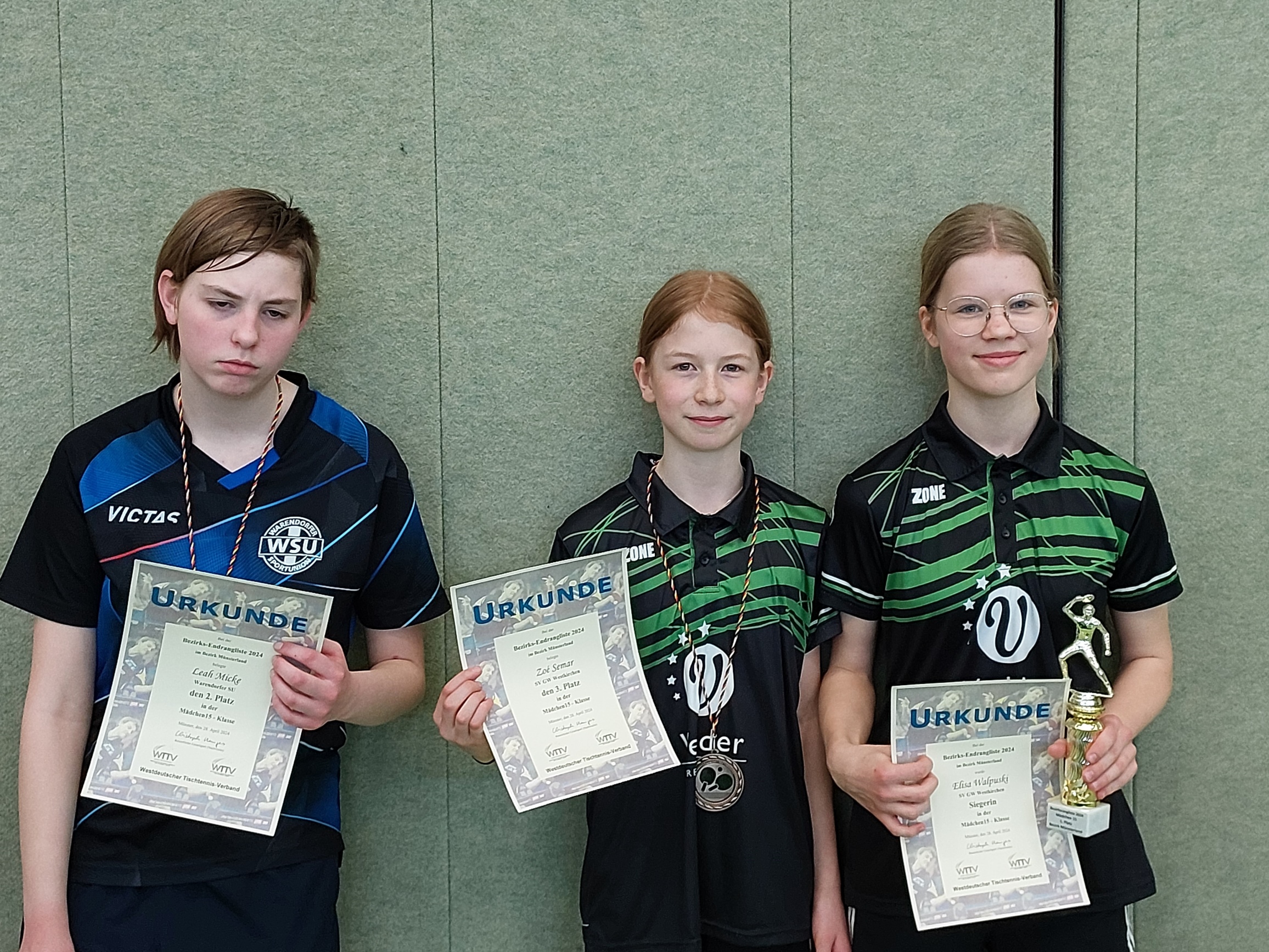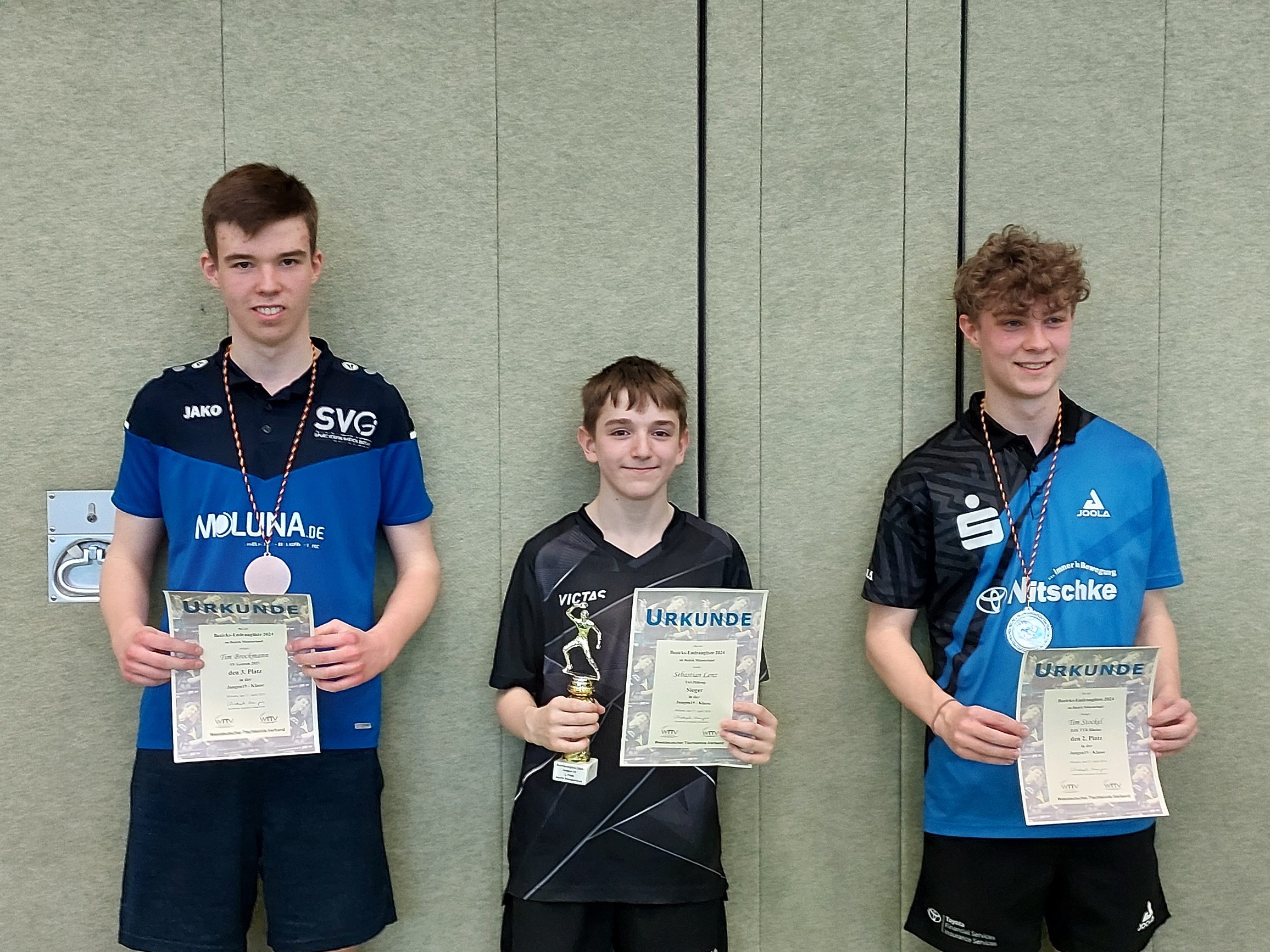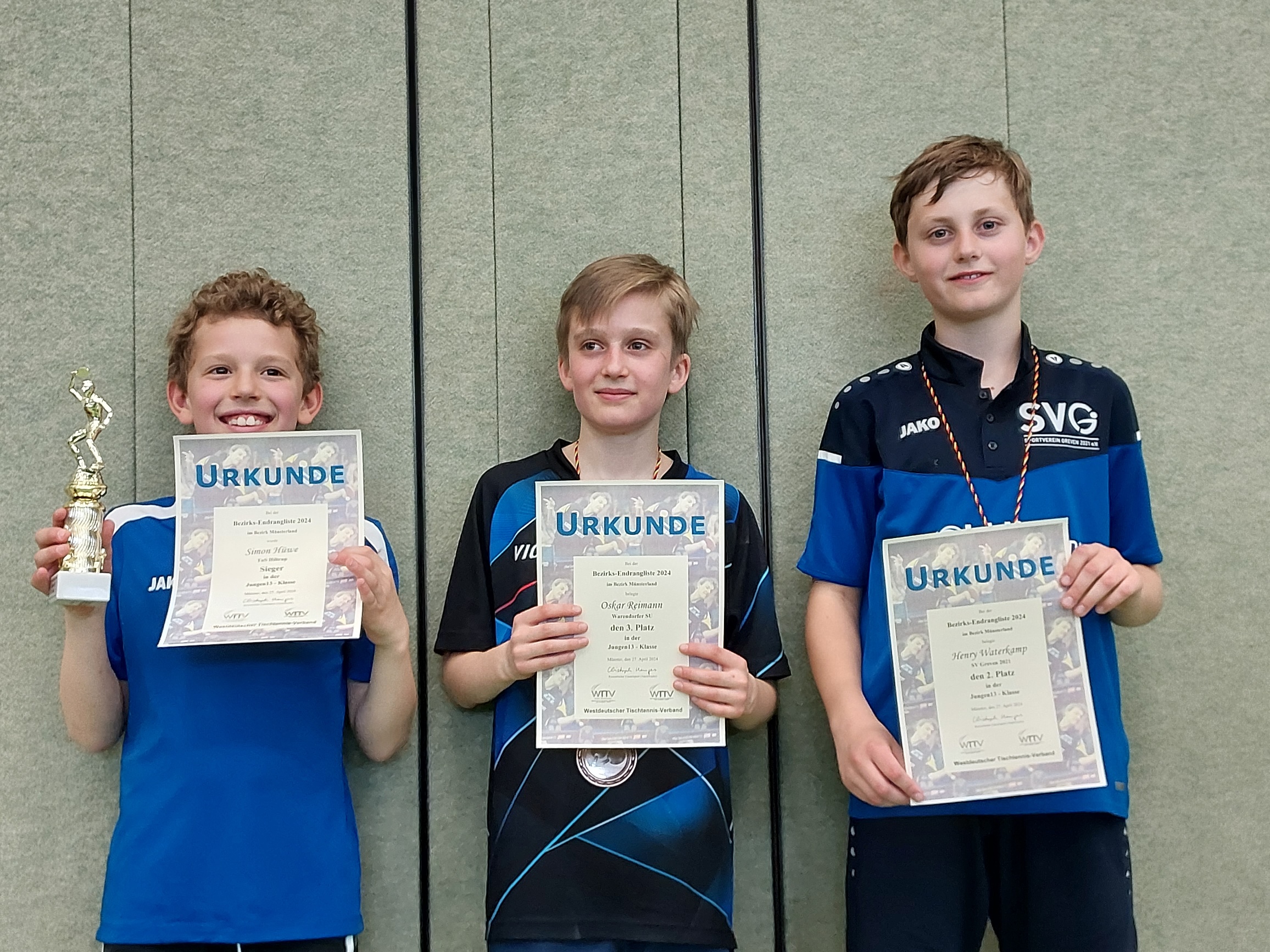 Leider waren es zumeist nur die Sieger, die mit ihrer guten Platzierung ein Ticket für die WTTV-Ranglisten im Juni ergattern konnten. Sebastian Lenz (Jungen 15) und Luca Puppe (Jungen 13) waren zurecht freigestellt, denn sie gewannen sogar die jeweils nächsthöhere Altersklasse (Lenz Jungen 19, Puppe Jungen 15). Sebastian Lenz (TuS Hiltrup) gab dabei insgesamt einen Satz ab, Luca Puppe (TB Burgsteinfurt) gar keinen.
