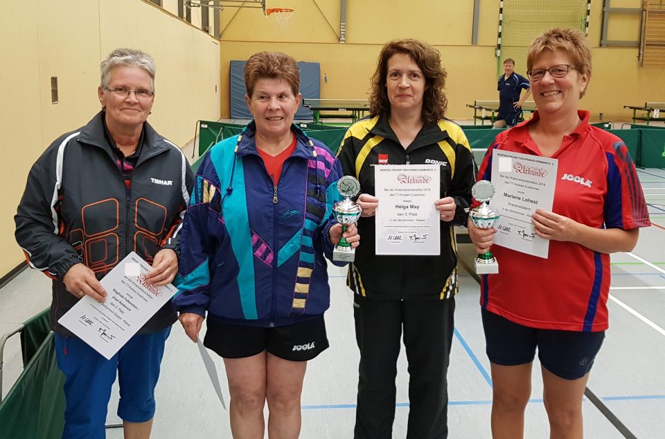 Bei den Seniorinnen wurde nur eine Altersklasse ausgetragen. Hier gewann Marlene Lohest vom gastgebenden TuS Zülpich vor Ursel Keldenich vom TTV Euskirchen. In der Senioren-40-Klasse siegte Uwe Klein vom SC Friesheim vor Thomas Müller vom TTC Lechenich.
