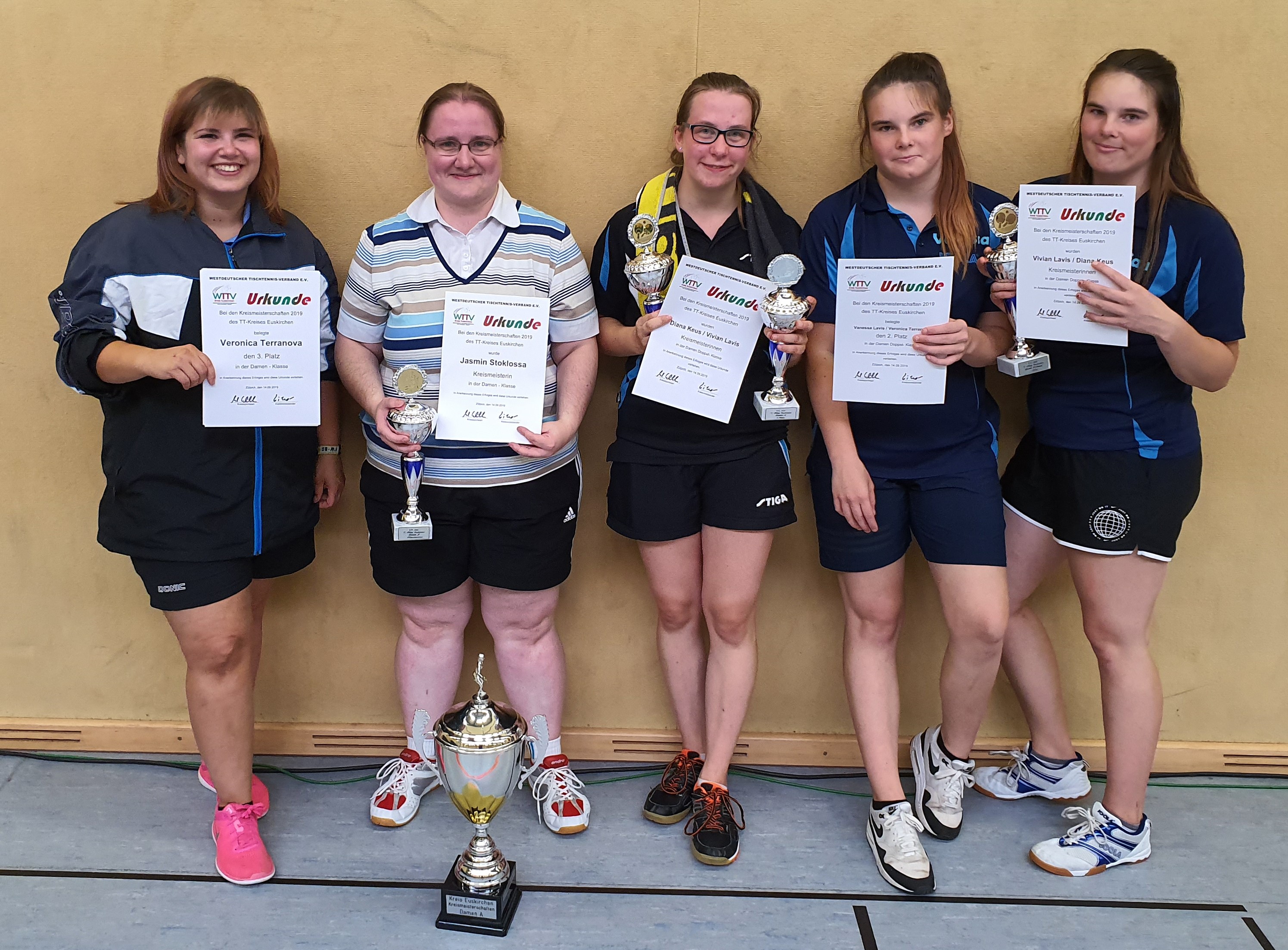 In der Damen-A-Klasse waren sieben Spielerinnen angetreten. Es siegte Jasmin Stoklossa vom TTC Lechenich vor Diana Keus vom TTV Euskirchen. Den dritten Platz belegten Ute Thelen vom TTV Lommersum und Veronica Terranova vom TTC Lechenich. Den Titel im Doppel gewannen Diana Keus und Vivian Lavis (TTV Euskirchen/TTC Lechenich).