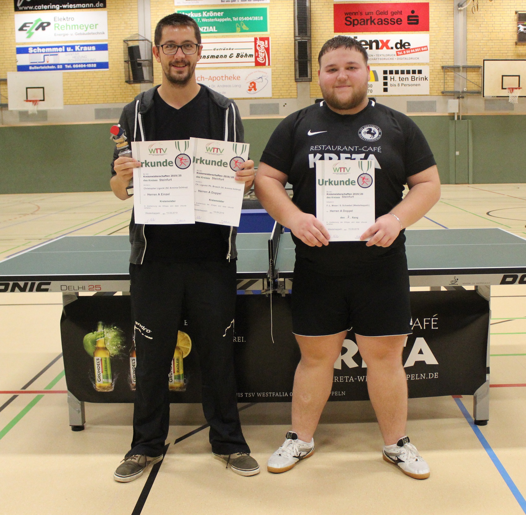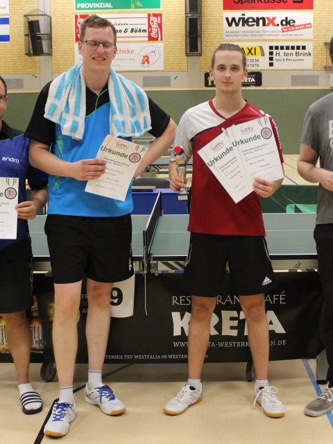 Herren A (Doppel): 1. Christopher Ligocki/Philip Brosch (Arminia Ochtrup), 2. Sergej Schwebel/Finn-Luca Moser (Westfalia Westerkappeln)