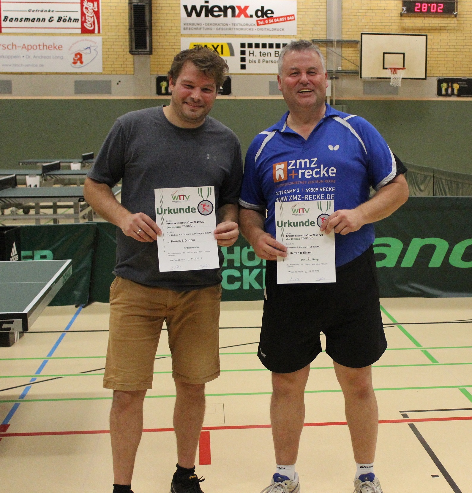 Herren/Damen B (Doppel): 1. Thomas Kuhn (TTC Ladbergen)/Alexander Lüttmann (TuS Recke), 2. Jetullah Selimi (Cheruskia Laggenbeck)/Philip Laumeier (Westfalia Westerkappeln)