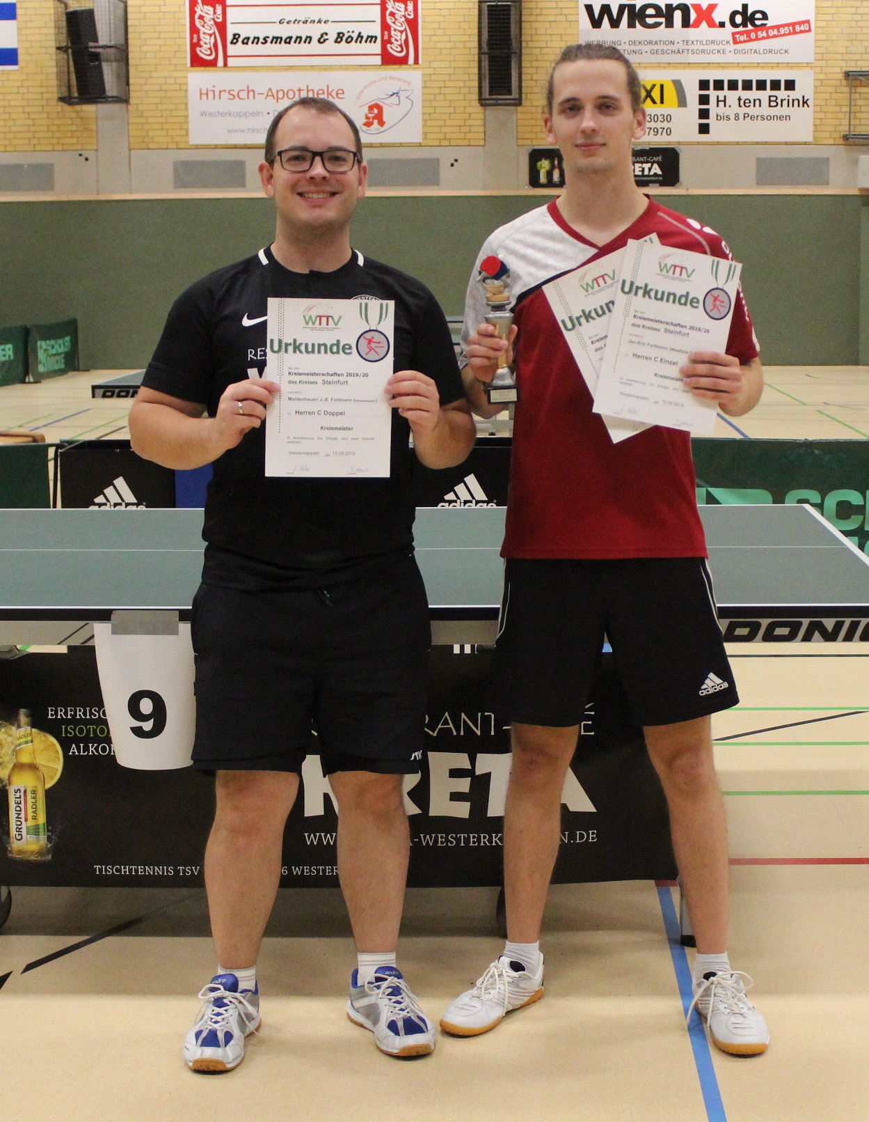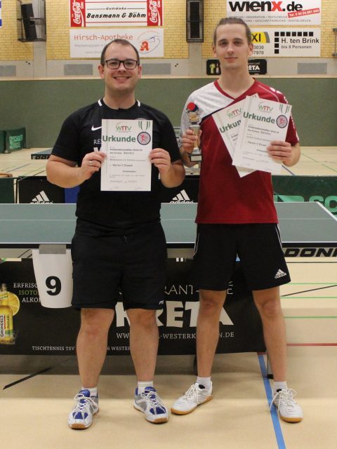 Herren/Damen C (Doppel): 1. Jan-Eric Fortmann/Erik Moldenhauer (Westfalia Westerkappeln), 2. Hendrik Kuck/Nino Kaske (TTC Ladbergen)