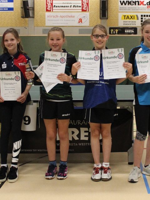 Mädchen U11 (Einzel): 1. Marina Hengstmann (TB Burgsteinfurt), 2. Melissa Correia Isci (TTR Rheine), 3. Hannah Kuhmann (Arminia Ochtrup)