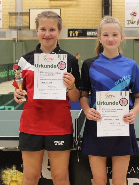 Mädchen U18 (Einzel): 1. Alicia Fortmann (Westfalia Westerkappeln), 2. Julia Shevnin (TB Burgsteinfurt)