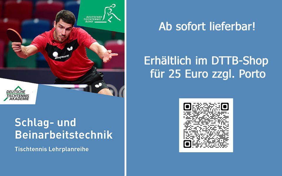 Der neue Lehrplan Schlag- und Beinarbeitstechniken des Deutschen Tischtennis-Bundes (DTTB) liegt druckfrisch für Ihre Bestellung bereit. Die komplett überarbeitete Version des Klassikers ist ein absolutes Grundlagenwerk für die tägliche Trainingsarbeit im Verein oder Verband. Dank der übersichtlichen Strukturierung, der Neuaufbereitung und Vereinheitlichung vieler Begrifflichkeiten und insbesondere der klaren Beschreibung sämtlicher Schlagtechniken im Tischtennissport setzt das Lehrbuch einen neuen Maßstab auch für die Aus- und Fortbildung von Trainerinnen und Trainern.