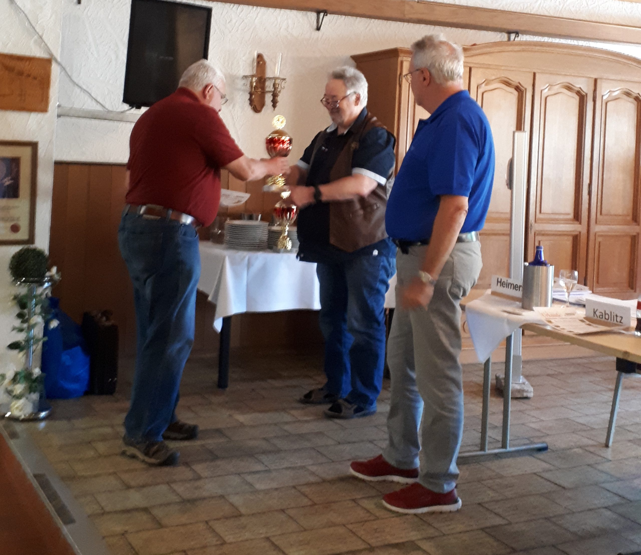 Letztmalig nahm im Anschluss Ferdi Wallies die Auszeichnung von verdienten Ehrenamtlern im Bezirk Mittelrhein vor: Johannes Heinzen – langjähriger Kreisvorstand Bonn, dort überdies Breitensportbeauftragter, ferner Kassenprüfer im Bezirk, Schiedsrichter und etabliertes Mitglied im Schiedsrichterausschuss – sowie Martin van Driessen – seit ewigen Zeiten als Lehrwart und Beauftragter für das Lehrwesen im Bezirk aktiv und weiterhin in „seinem“ Kreis ein steter „Helfer in der Not“ – wurde die gläserne Mittelrhein-Trophäe verliehen.