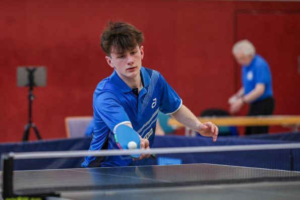 Am Sonntag konnten die Jungen dann noch um die Plätze 5-8 spielen. Im ersten Spiel ging es gegen Berlin. Zwar musste sich Lheriau gegen den Spitzenspieler Hugo Rusch aus Berlin geschlagen geben, da aber alle anderen Spiele gewonnen wurde, war ein 4:1-Gesamtsieg erspielt. Im letzten Spiel des Wochenendes ging es dann um den 5. Platz gegen die Hessen. Hier legte Lheriau mit einem 3:1-Sieg gegen Borris Zheng den Grundstein für den Erfolg. Lenz steuerte einen weiteren Sieg gegen den Linkshänder Stoll bei und Yordanov gewann 3:1 gegen den Abwehrspieler Rohaly. Das anschließende Doppel gewannen Lenz/Lheriau auch mit 3:1, so dass ein 4:0-Sieg gegen Hessen und der fünfte Platz gesichert war.