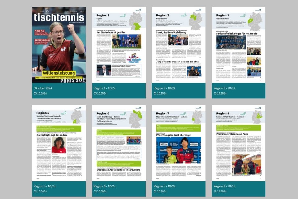 1. Die Regionalteile und das Magazin „tischtennis“ sind als E-Paper für alle identifizierten myTischtennis.de-User kostenfrei nutzbar.
