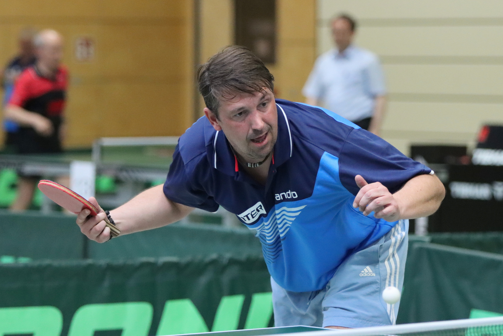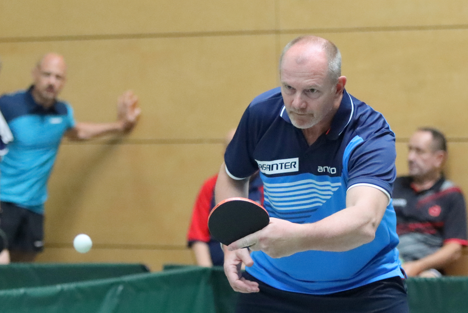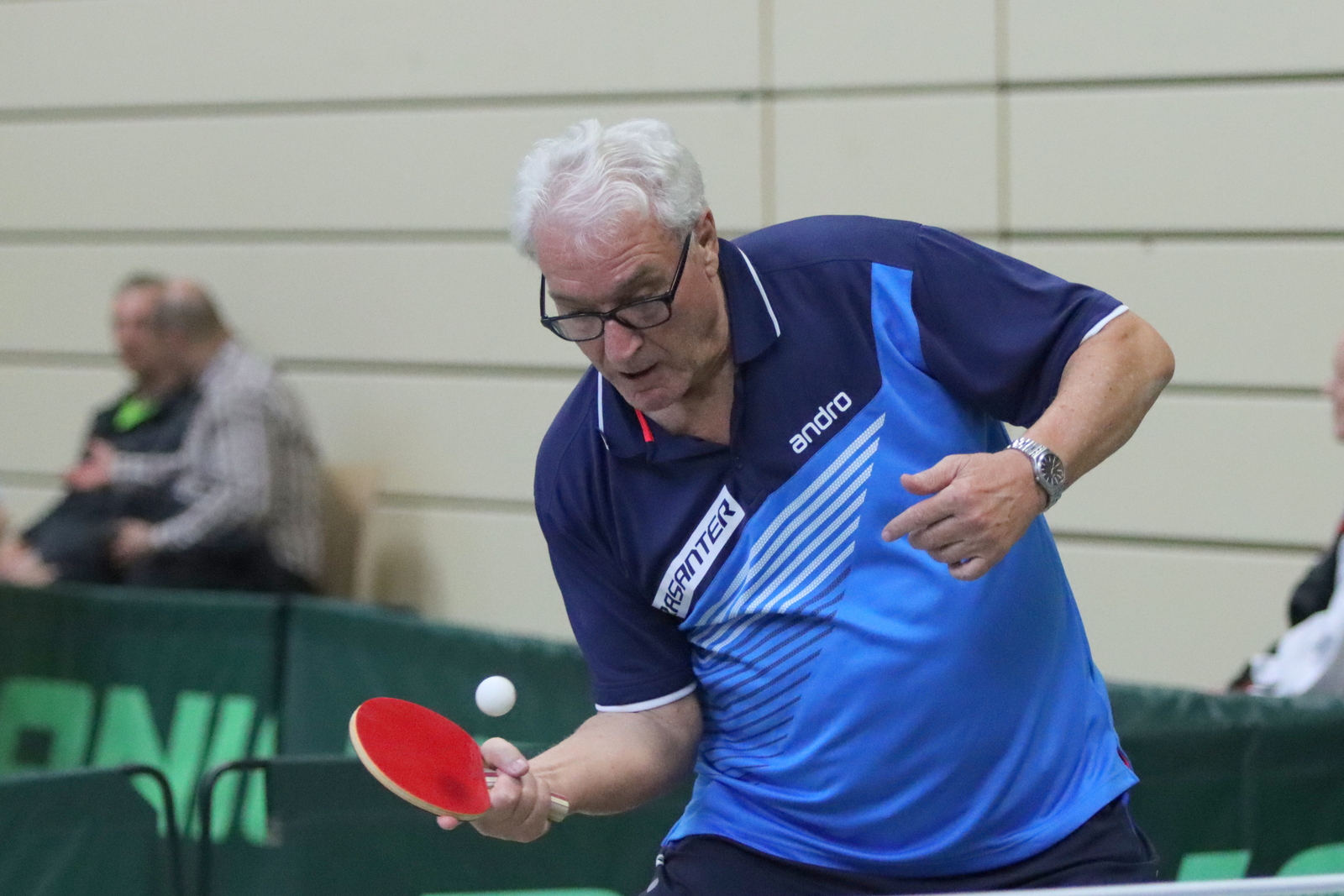 Für großartige Atmosphäre sorgten spektakuläre Auftritte von Wolfgang Gerth und Joachim Beumers (Sen-50) in Einzel und Doppel und dazu das Linkshänder-Doppel Maurice Mann/Guido Schmitz (Sen-45).