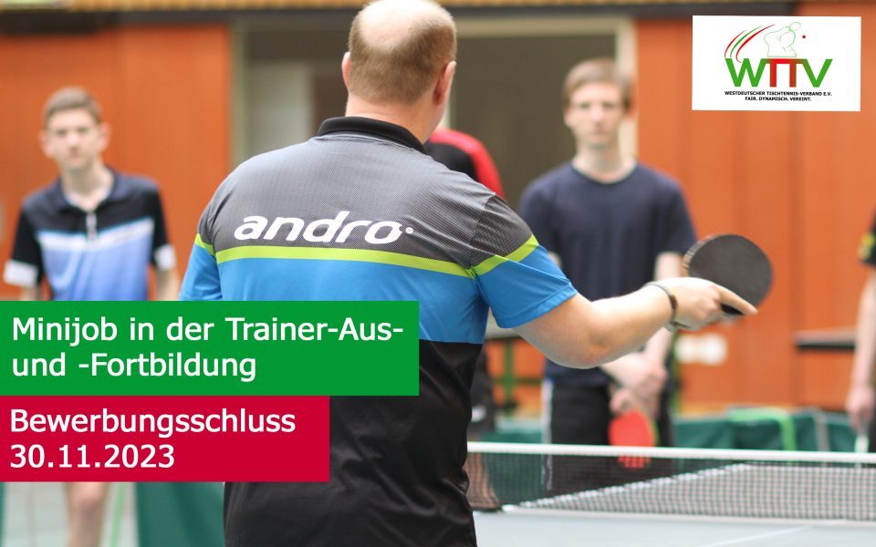 Im Westdeutschen Tischtennis-Verband e.V. (WTTV) ist ab dem 01.01.2024 – zunächst befristet für die Dauer von 2 Jahren – die Stelle