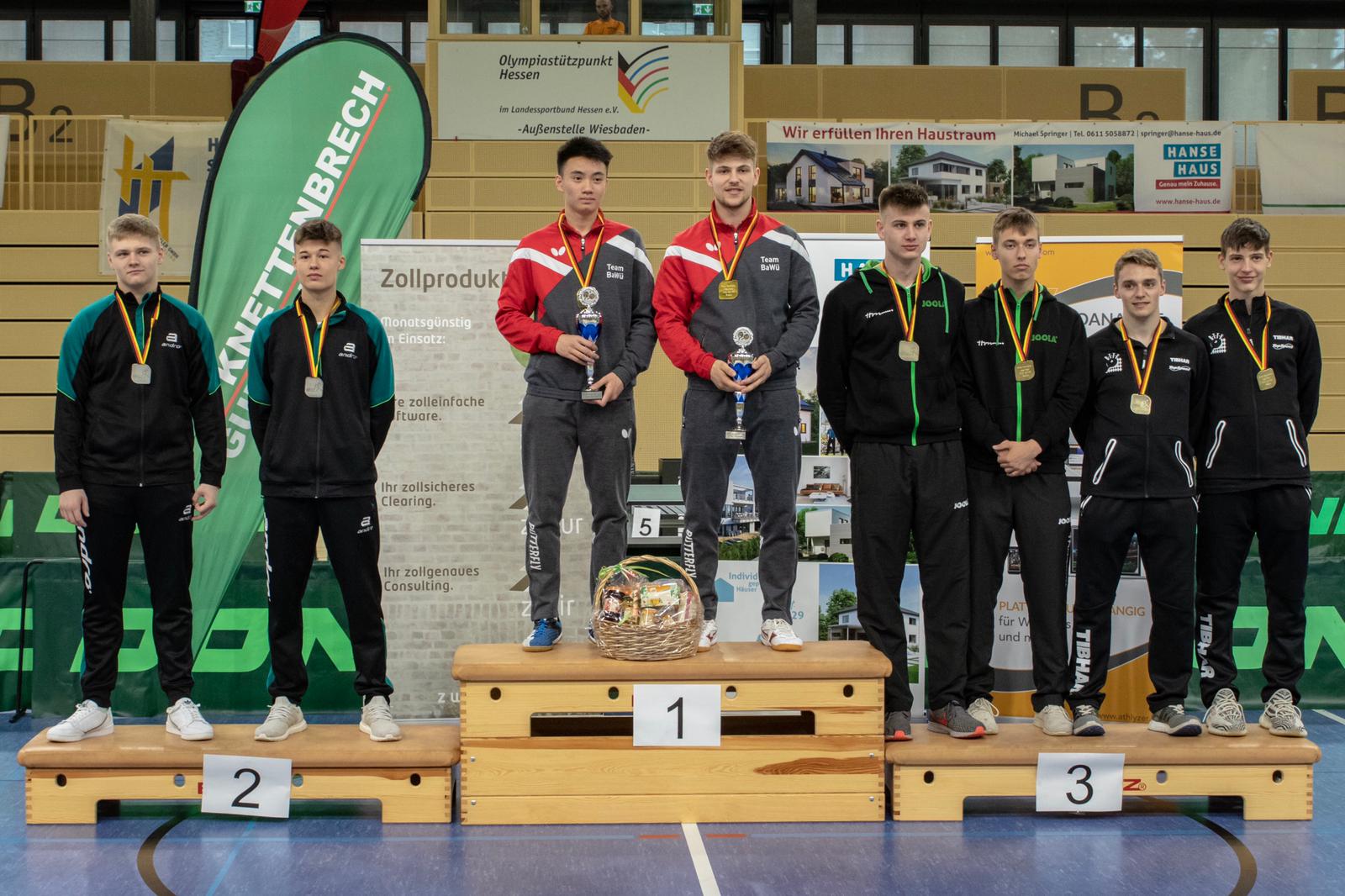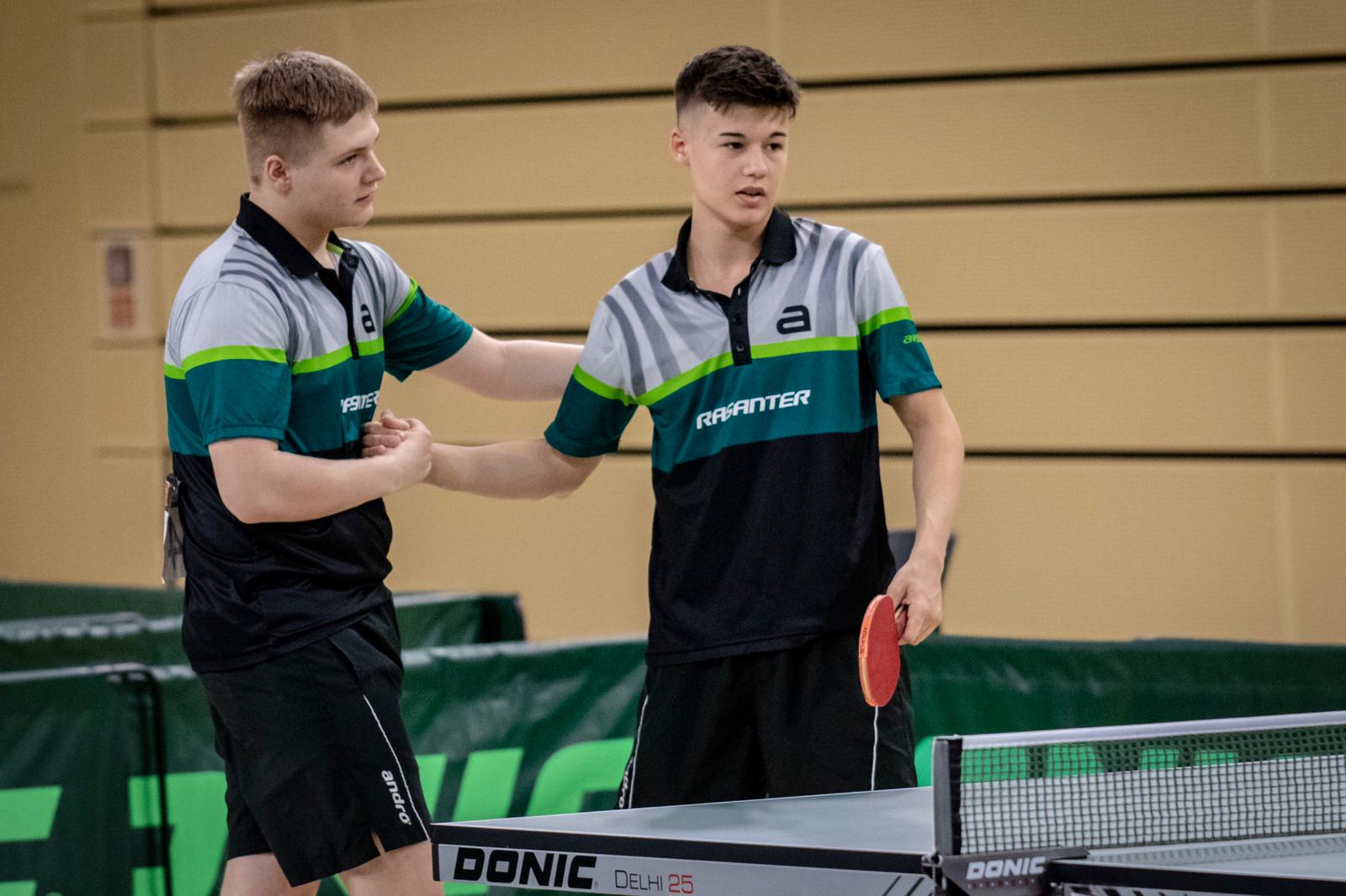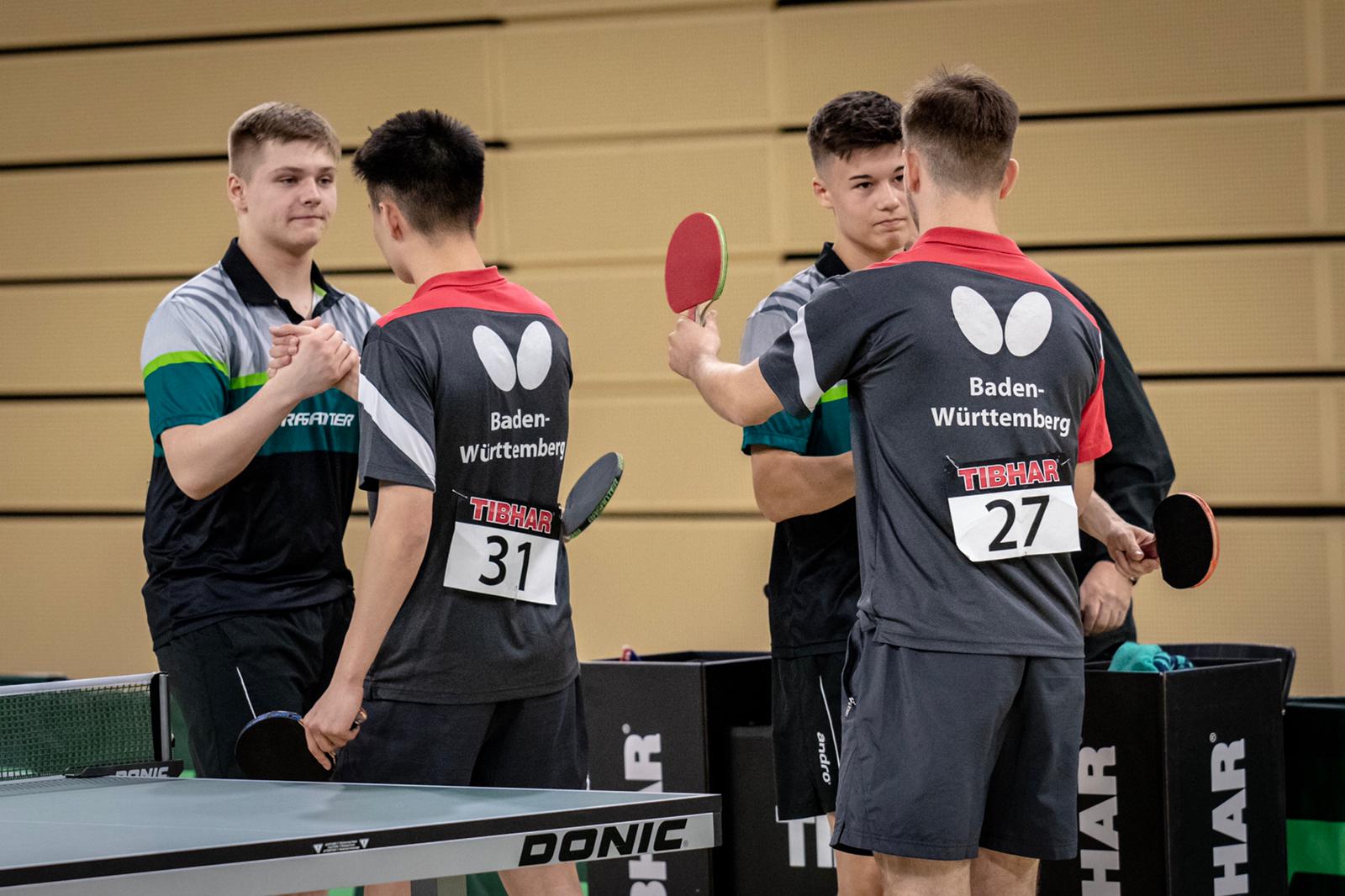 Tom und Lukas, die auch schon beim Deutschland Pokal zusammeln Doppel gespielt haben, fanden im Laufe des Turniers immer besser zusammen und konnten sich von Runde zu Runde steigern. Nachdem sie zu Beginn des Turnier im Achtel- und Viertelfinale zwar deutlich gegen Llorca/Klute (HTTV) und Senkbeil/Kohne (TTVN) gewinnen konnten, bedurfte es schon einer Leistungssteigerung, um im Halbfinale das eingespielte bayrische Duo Hörmann/Rinderer zu besiegen. Und dies zeigten die Jungs auch. In einem hochklassigen und dramatischen Match, welches über die volle Distanz ging, gewannen sie am Ende mit 11:9 im Entscheidungssatz und zogen so ins Finale gegen Hennig/Tran (TTVBW) ein.