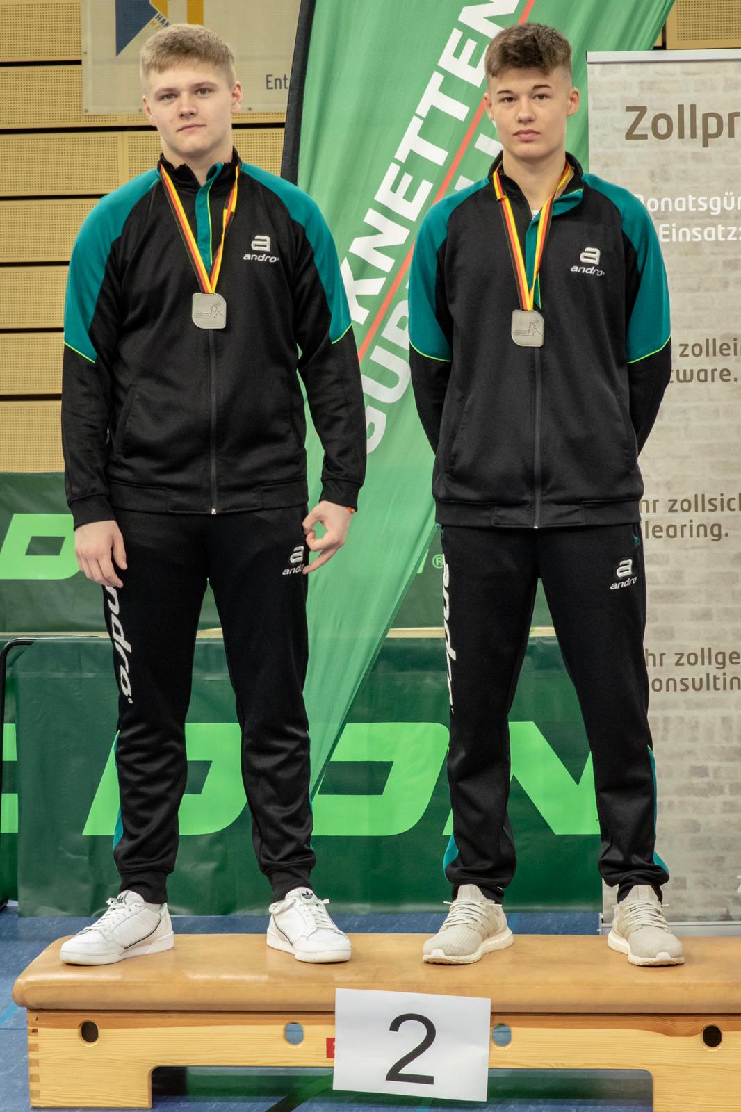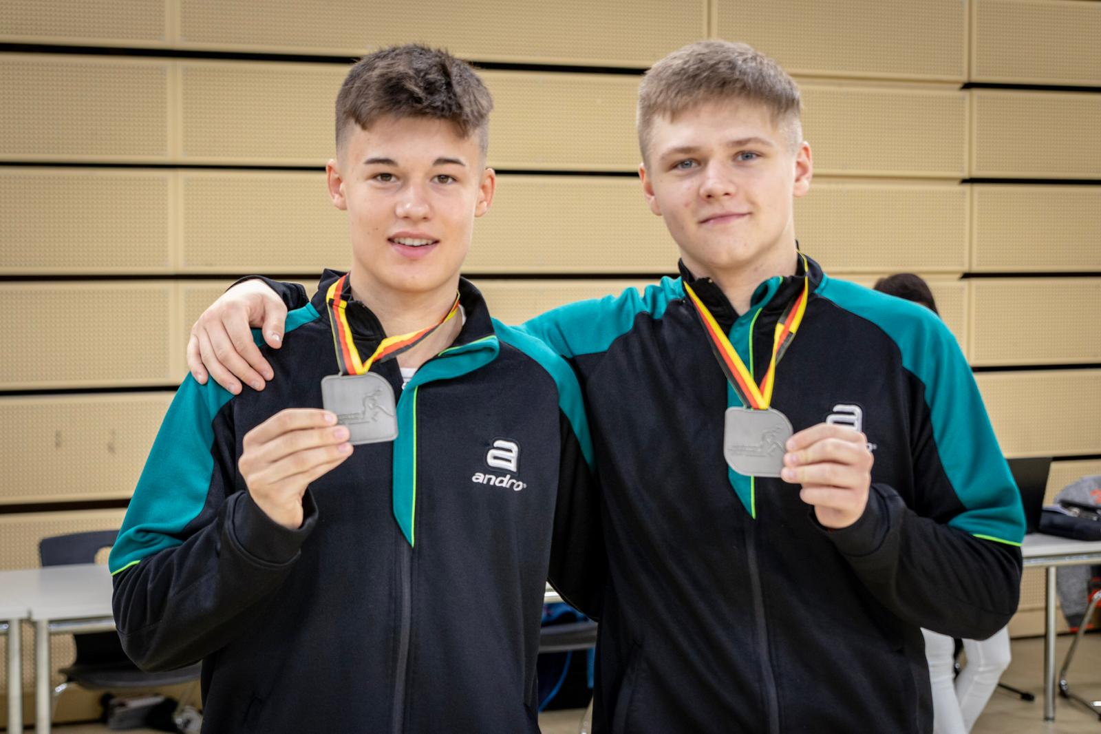 Zu Beginn konnte man etwas spüren, dass es gerade für Lukas das erste Finale auf nationaler Ebene war. Aber ab Mitte des ersten Satzes wurde das Spiel der beiden WTTV’ler konstanter. Leider verloren sie den ersten Satz nach toller Aufholjagt mit 10:12 und auch Satz zwei ging mit 11:7 an die Baden-Württemberger. In Satz drei hatte man dann das Gefühl, dass Tom und Lukas endgültig ins Spiel gefunden haben, sie gewannen mit 11:6. Doch gleich zu Beginn von Satz vier gerieten sie wieder in Rückstand, konnten nach dem Time-Out zwar noch zum 5:5 ausgleichen, mussten am Ende aber gratulieren. Trotzdem eine tolle Leistung und herzichen Glückwunsch zu Silber!