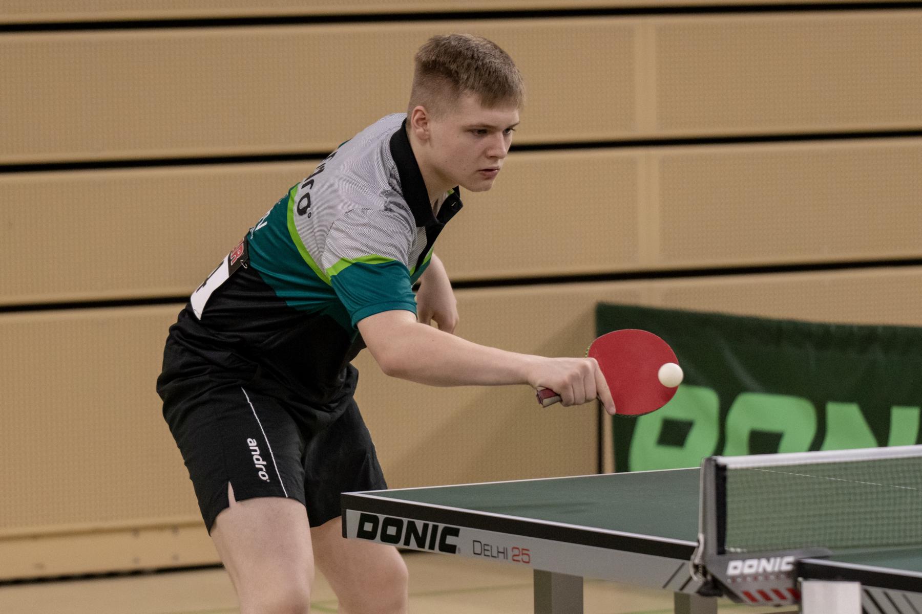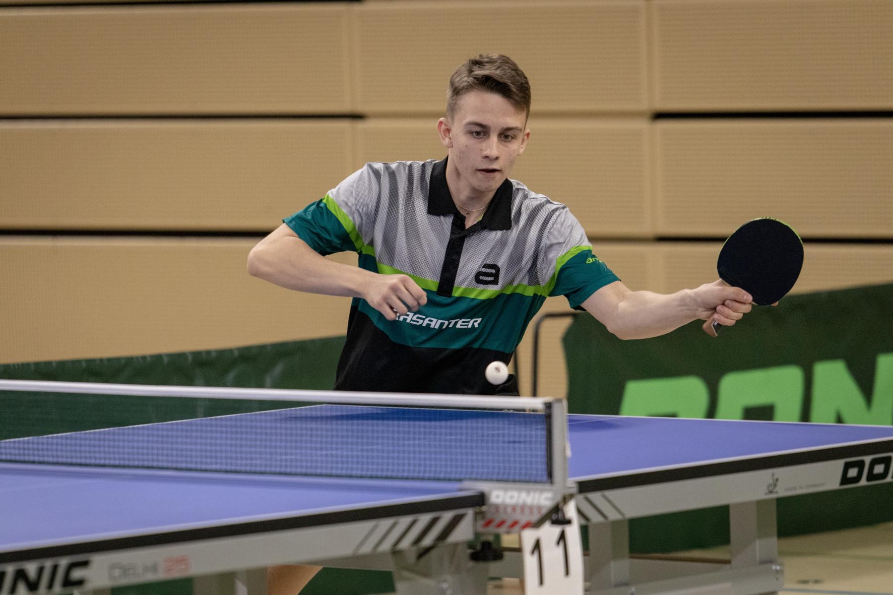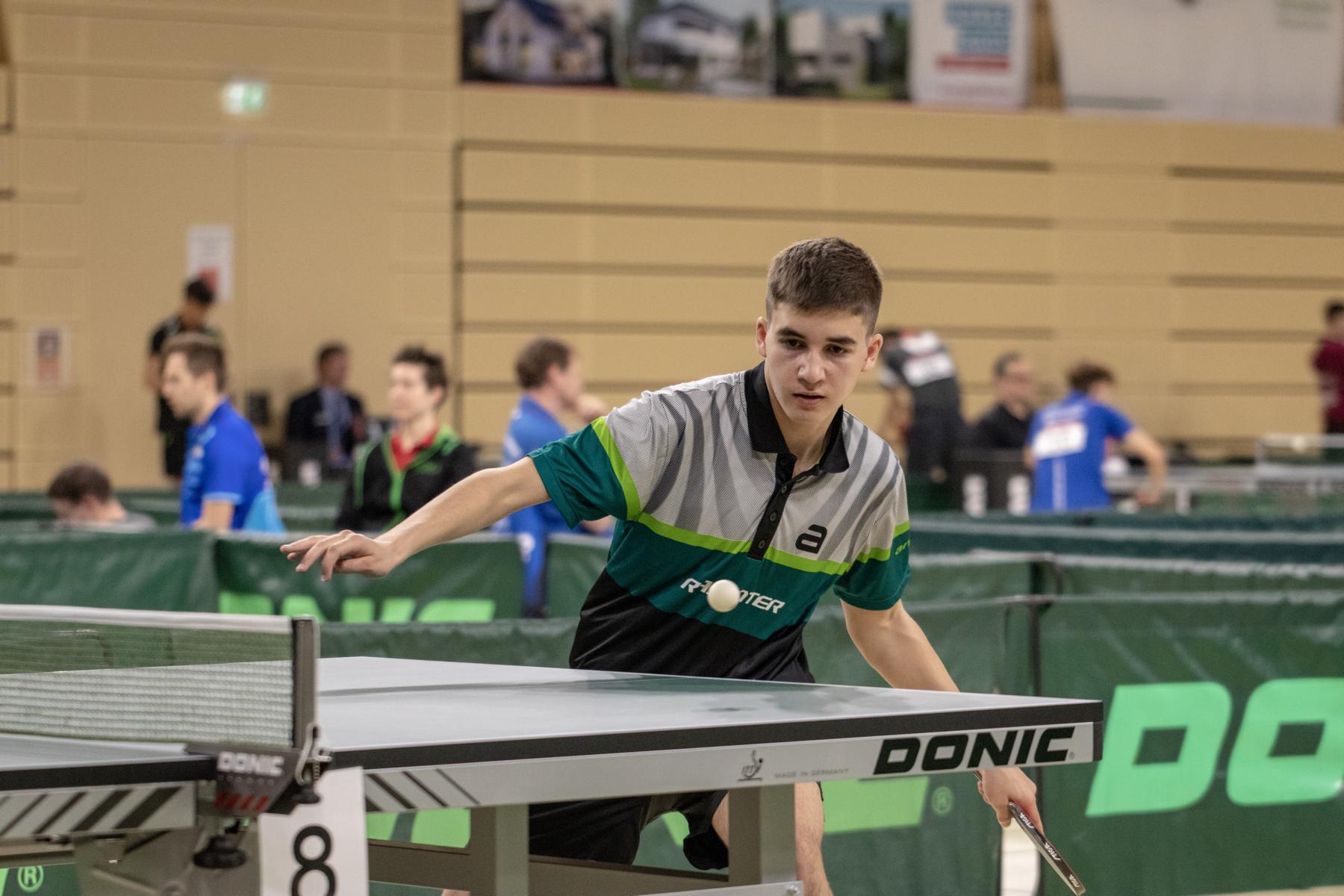 Etwas überraschend schied auch Lukas Bosbach in der Gruppenphase aus. Der Westdeutsche Meister fand an diesem Tag nicht zu seinem Spiel und verlor sowohl gegen Abwehrer Hintze (TTVN) als auch gegen Hörmann (BYTTV).