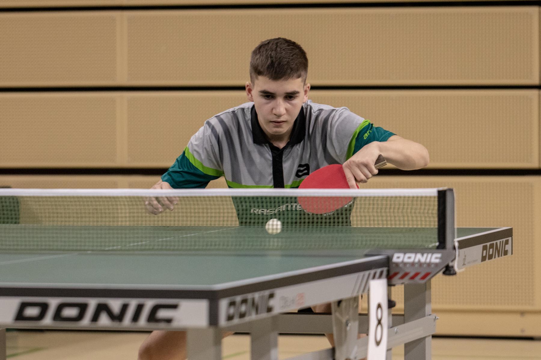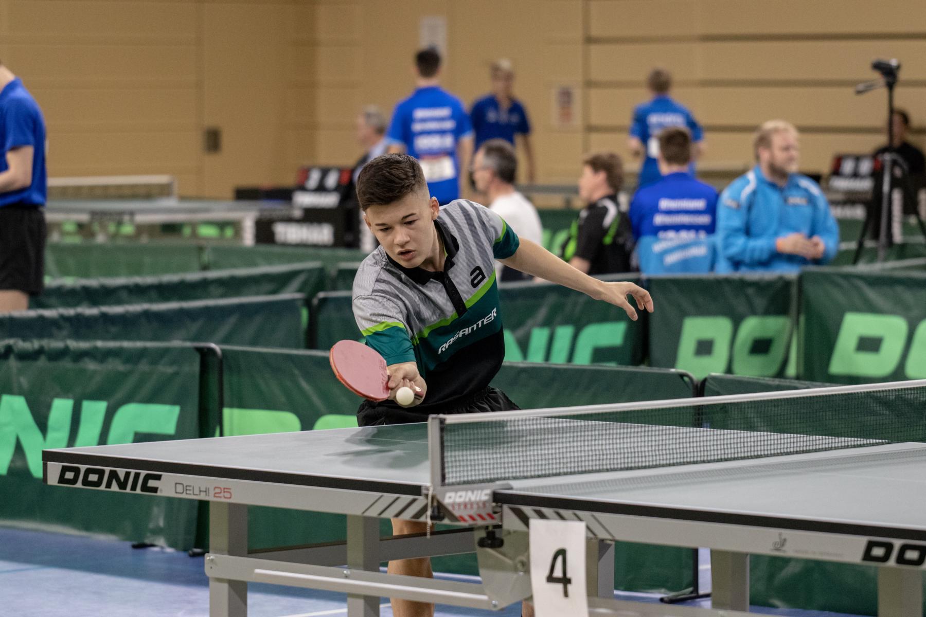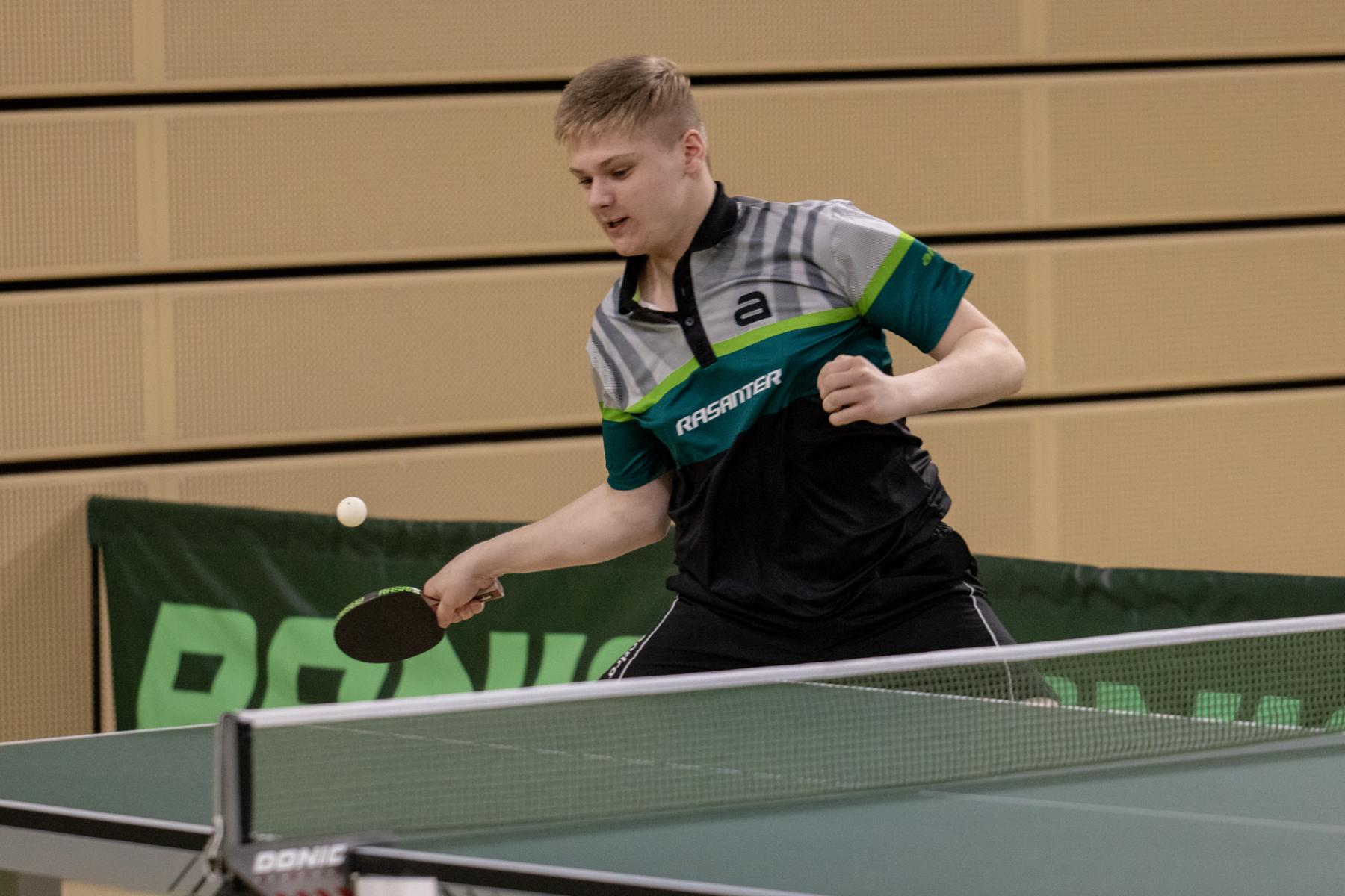 Etwas überraschend schied auch Lukas Bosbach in der Gruppenphase aus. Der Westdeutsche Meister fand an diesem Tag nicht zu seinem Spiel und verlor sowohl gegen Abwehrer Hintze (TTVN) als auch gegen Hörmann (BYTTV).