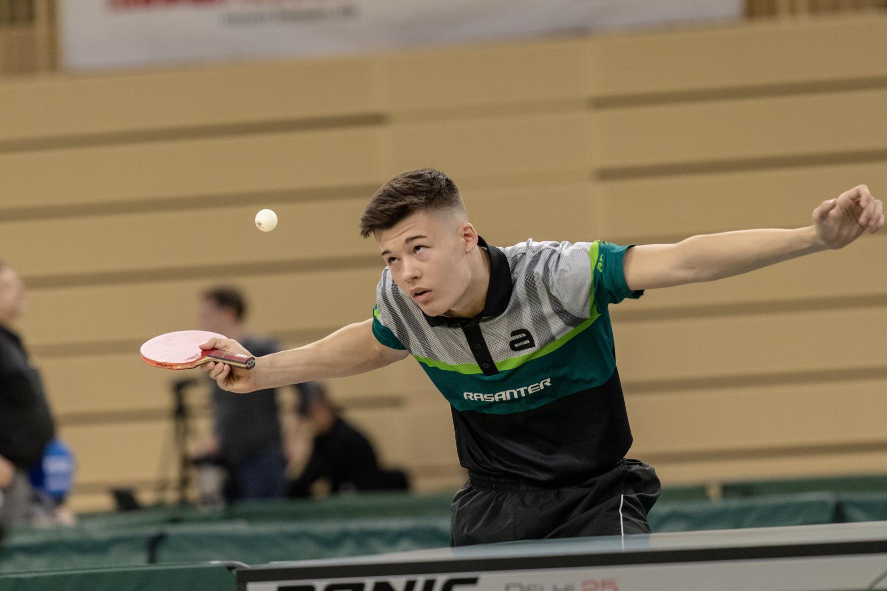 Bei den Jungen erreichten Tom Mykietyn, Rafael Schapiro und Tobias Slanina das KO-Feld. Tom ließ in der Gruppenphase nichts anbrennen, verlor keinen Satz und qualifizierte sich damit direkt für das Achtelfinale. Hier traf er auf Nico Longhino (BYTTV). Nach Startschwierigkeiten und verlorenem ersten Satz fand Tom zu seinem Spiel und erreichte das Viertelfinale. Hier wartete allerdings der an Position Eins gesetzte Kay Stumper (TTBW). Trotz großer Gegenwehr konnte Tom den Top-Favoriten nicht stürzen und unterlag mit 1:4. Altersbedingt war dies für Tom der letzte Auftritt bei einer Jugendmeisterschaft. Wir bedanken uns bei Tom für die Jugend-Jahre und wünschen ihm für seine weitere sportliche Zukunft alles Gute!