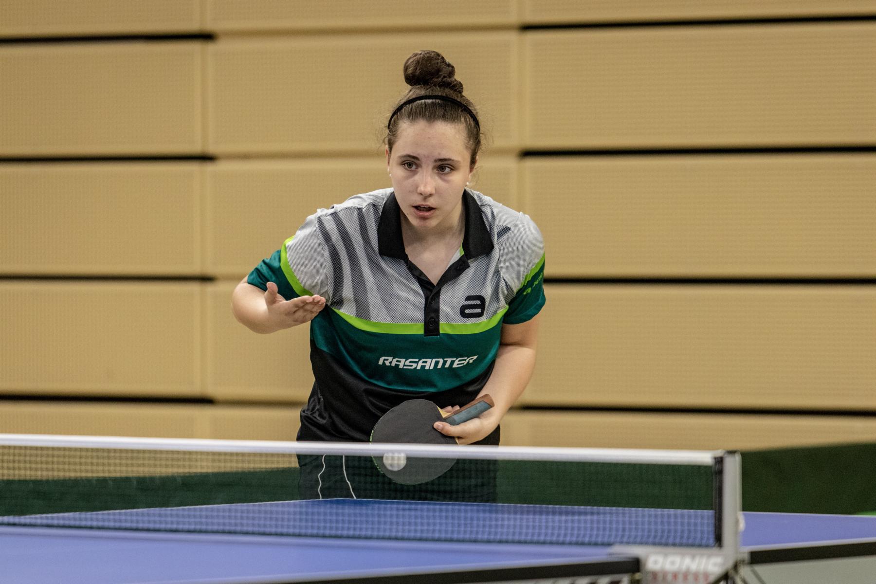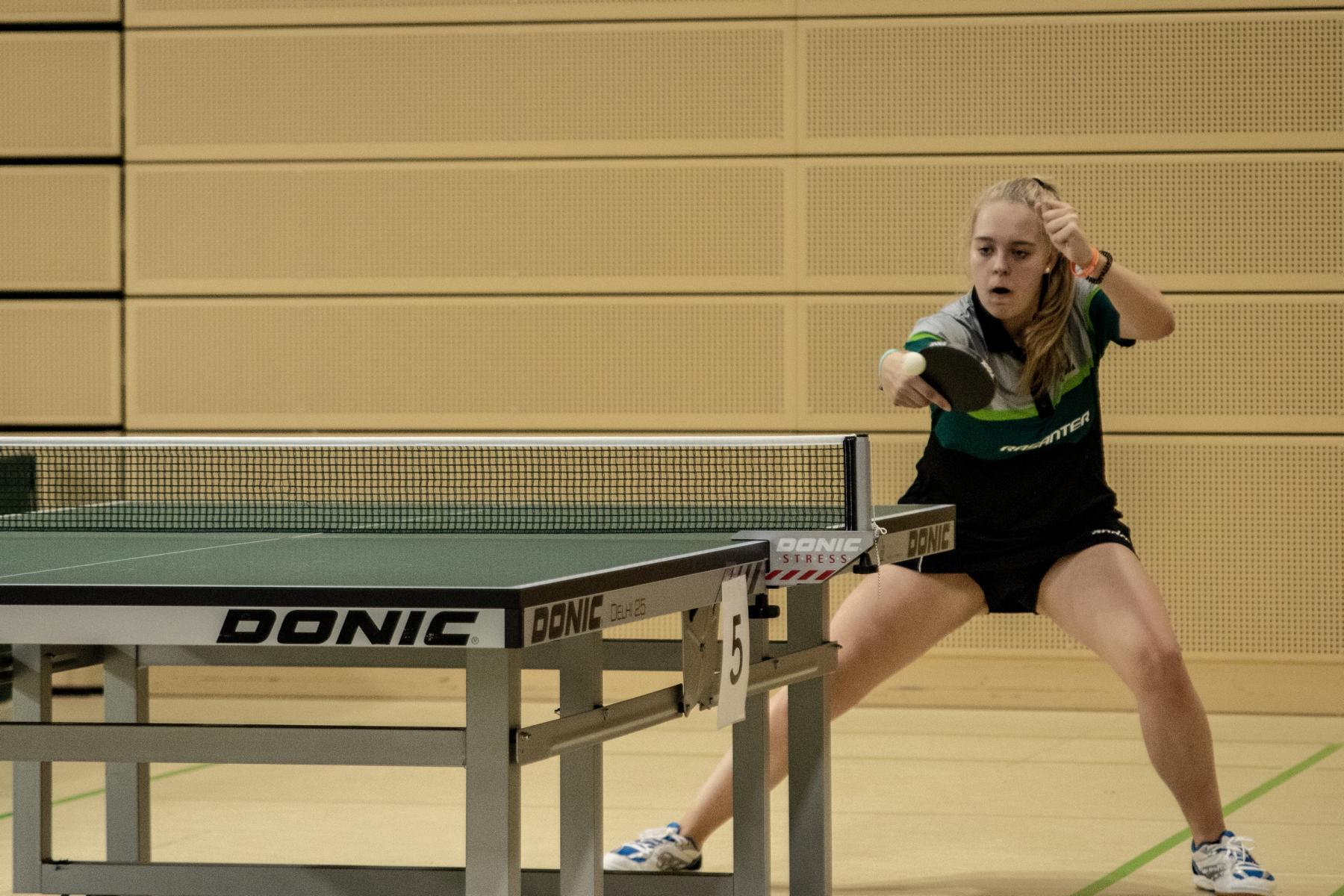 Im Einzel überstanden bei den Mädchen nur Leonie Berger und Hannah Schönau die Gruppenphase und konnten sich für die Zwischenrunde und somit das Spiel zum Einzug ins Achtelfinale qualifizieren. Leonie, die in der Gruppenphase alle drei Spiele souverän gewann, traf hier auf Luisa Reising (Sachsen-Anhalt) und bewätigte ihre Aufgabe mit einem deutlichen 3:0 und zog damit ins Achtelfinale gegen Kirner (TTBW) ein. Auch in diesem, welches über vier Gewinnsätze gespielt wird, agierte Leonie sehr souverän und kam zu einem ungefährdeten 4:1 Sieg. Im Viertelfinale war die spätere Deutsche Meisterin, Sophia Klee allerdings noch eine Nummer zu groß.