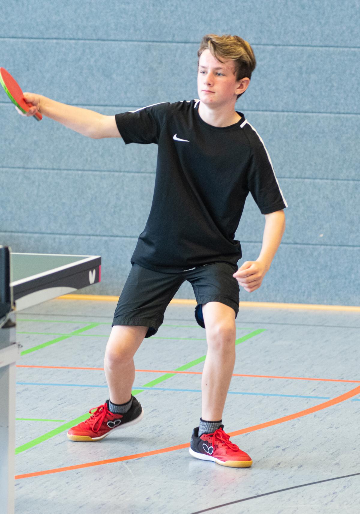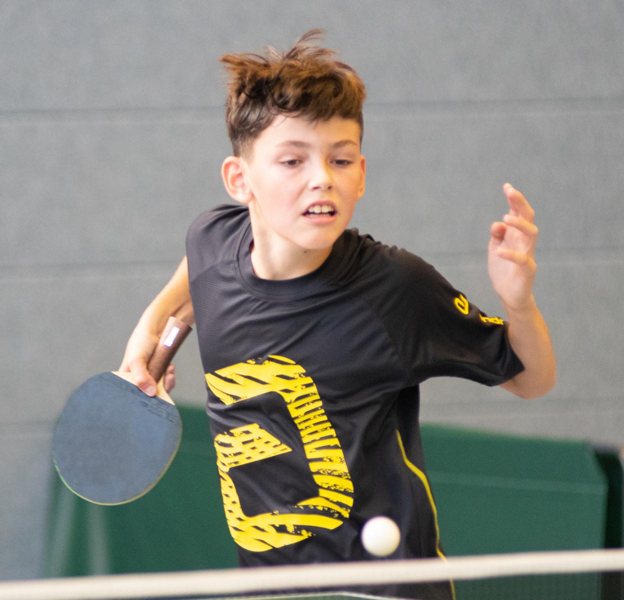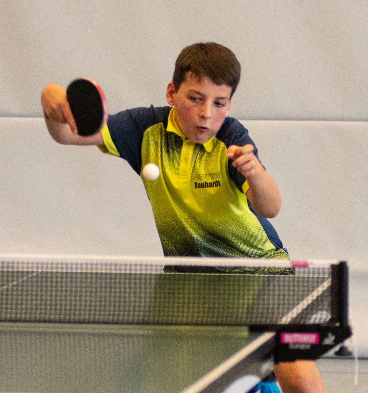 Bis zum Halbfinale zeigten auch noch Jonas Haarmann (TB Burgsteinfurt) und Lenny Pfennighaus sehr gute Leistungen und standen verdient in der Vorschlussrunde. Hier belegte nach einem 3:1 im Spiel um Platz 3 Lenny den vierten Platz. Auch Tom Henseler zeigte tolle Leistungen, kam mit einer 2:1 Bilanz aus der Gruppe und gewann auch noch in der Runde 5-8 gegen George Udrescu (TTC BW Datteln).