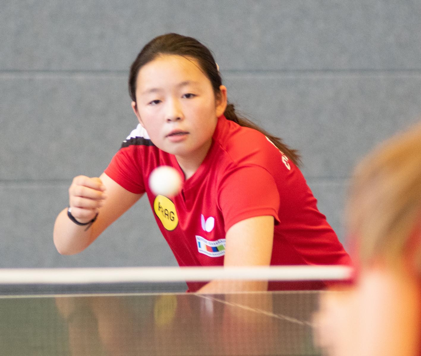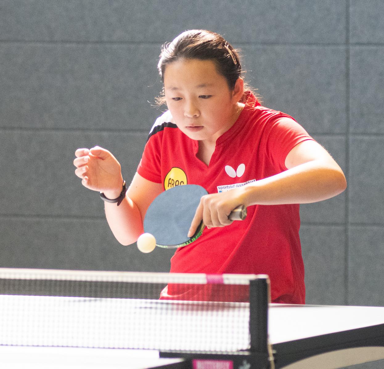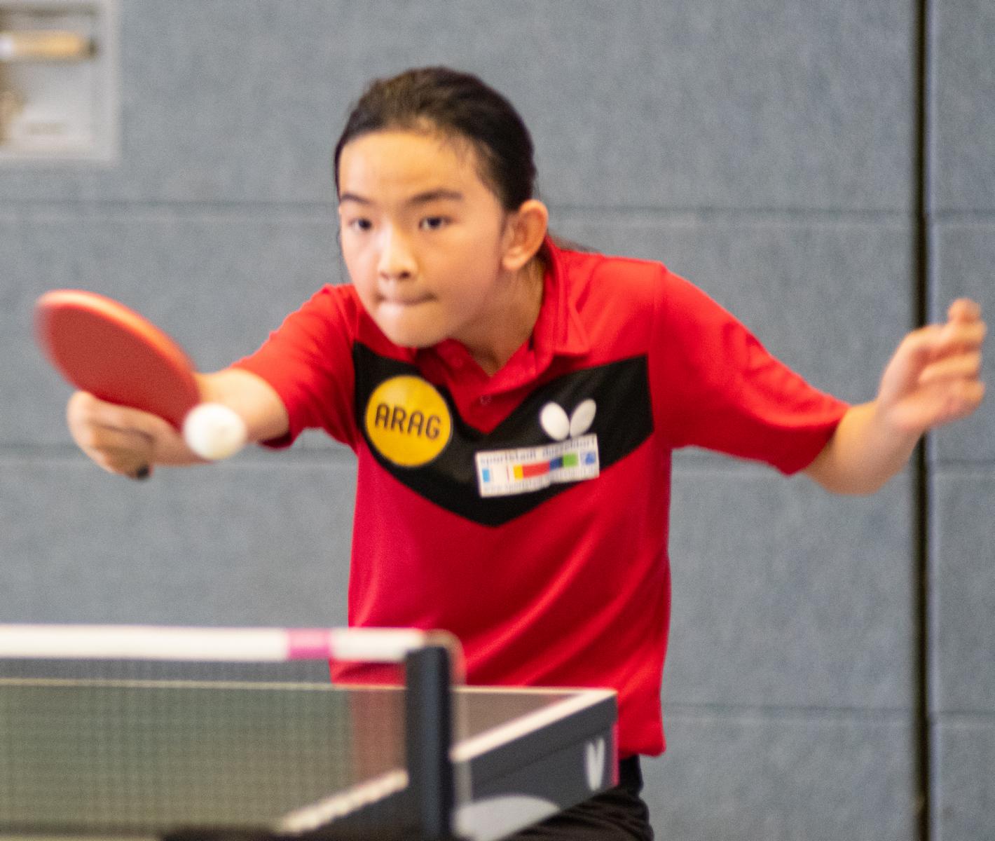 Bei den Mädchen13 spielten die Topgesetzten Rhea Zhu Chen und Ruoqi Wei in der Vorrunde sehr souverän und kamen beide ohne Satzverlust in die KO-Runde. Im Halbfinale gewann Ruoqi souverän gegen Sahra Osmani (TTC Marl-Hüls), die ebenfalls ein tolles Turnier spielte mit 3.0. Im anderen Halbfinale tat sich Rhea deutlich schwerer gegen Stella Huynh (SC Fortuna Bonn). Mit 3:1 zog Rhea letztlich dennoch verdient ins Finale ein.