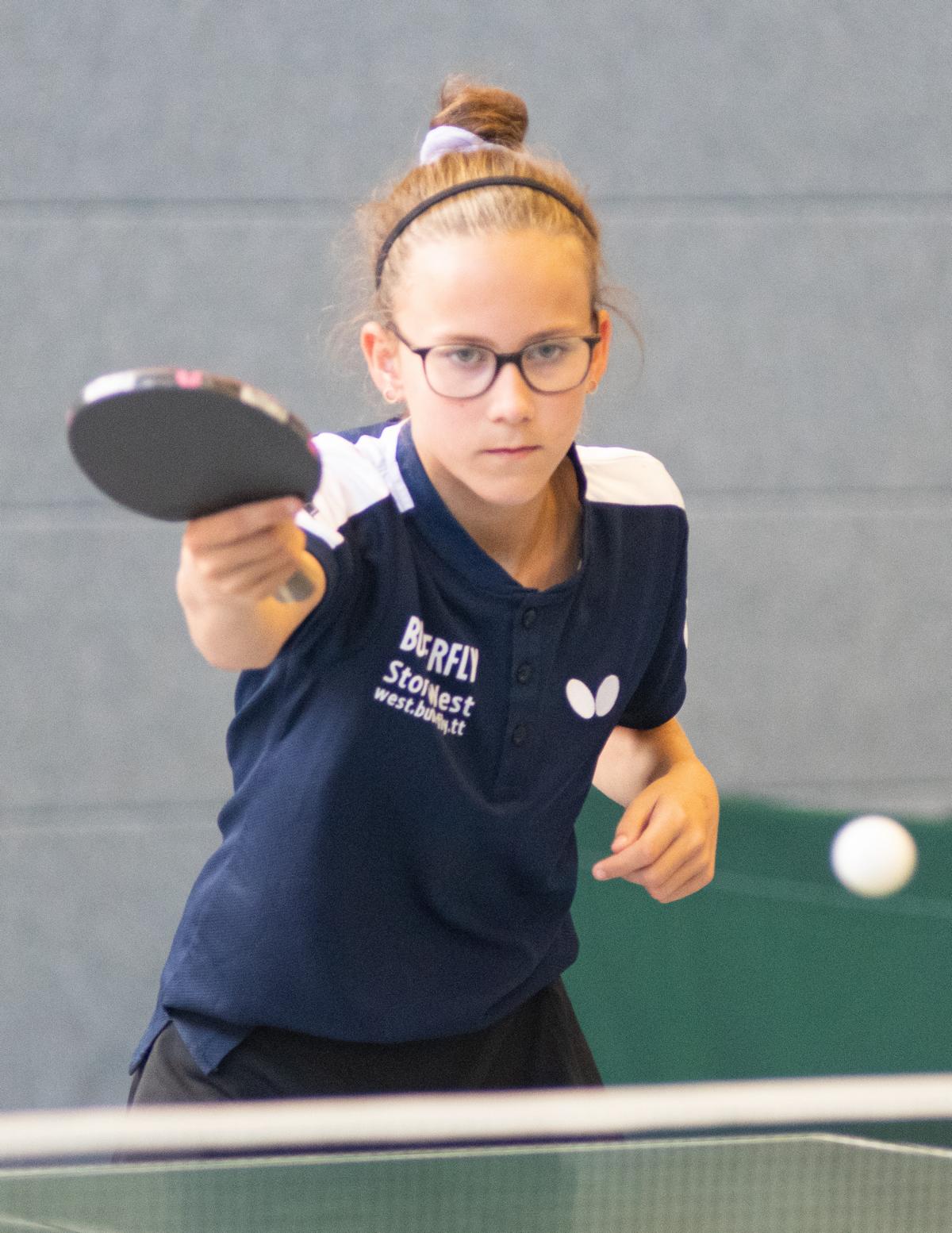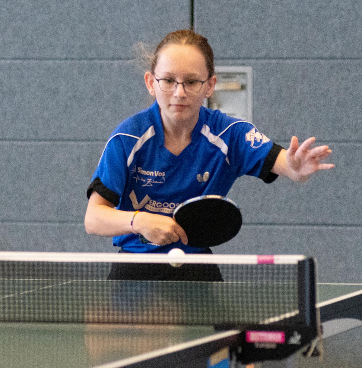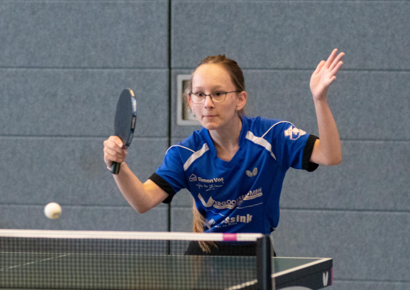 Im Laufe des Turniers zeigte noch Greta Börgershausen als Spielerin, die auch im nächsten Jahr noch in dieser Altersklasse spielberechtigt ist, gute Leistungen. Im Spiel um Platz 5 ging es gegen Maria Holin (TTK Anröchte). Dort spielte Greta wieder sehr gut und gewann nach dem Gruppenspiel gegen Maria erneut. War es in der Gruppe noch ein 3:1 Sieg, so gewann Greta diesmal mit 3:0.