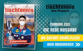 Die Februar-Ausgabe von tischtennis erscheint am 5. Februar, wie immer können Sie die Ausgabe bereits einen Tag früher als E-Paper lesen. Die digitale Version ist angereichert mit zusätzlichen Inhalten wie Fotogalerien, zusätzlichen Texten oder Videos. Jeder Abonnent hat einen Zugang zur elektronischen Version des Magazins, die Sie auf Computer, Smartphone oder Tablet lesen können. Wenn Sie noch kein Abonnent sind, aber Sie die Themen der aktuellen Ausgabe interessieren oder Sie sich einen ersten Eindruck vom führenden deutschsprachigen Tischtennis-Magazin machen möchten, können Sie jede Ausgabe von tischtennis auch einzeln bestellen.
