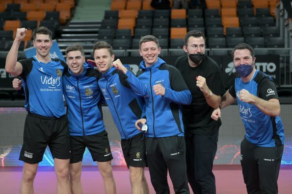 So standen sich am Abend die aktuell besten Mannschaften der TTBL im Finale gegenüber. Borussia Düsseldorf, die ohne den verletzten Timo Boll antreten mussten, versuchten alles, um den ersten Titel der Saison zu gewinnen, jedoch war Saarbrücken an diesem Abend für Anton Källberg, Kristian Karlsson und Dang Qiu nicht zu schlagen. Zum Matchgewinn schlugen für Saarbrücken Patrick Franziska, Darko Jogic und Tomas Polansky auf. Mit 3:1 ging das Spiel und der Pokal ins Saarland.