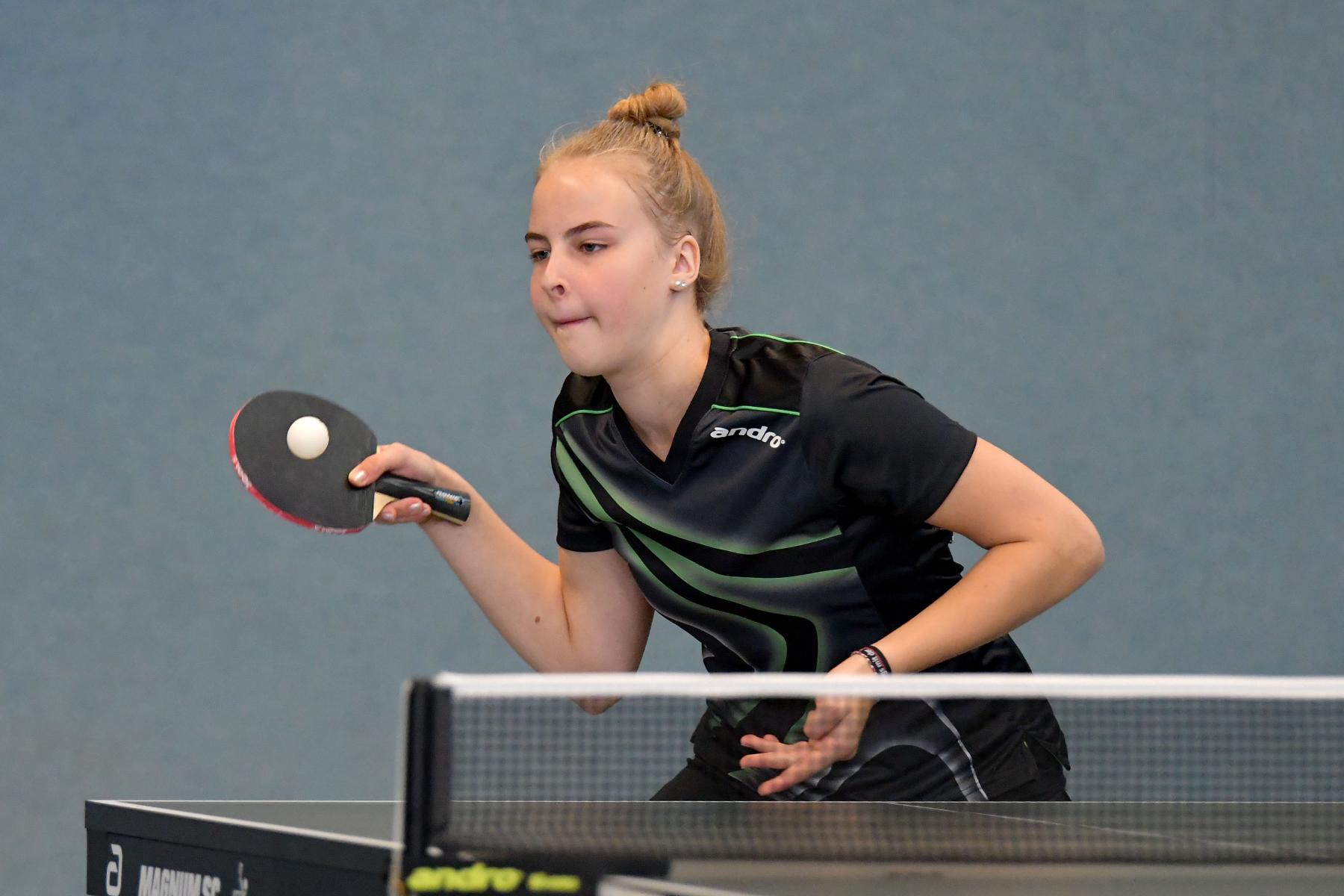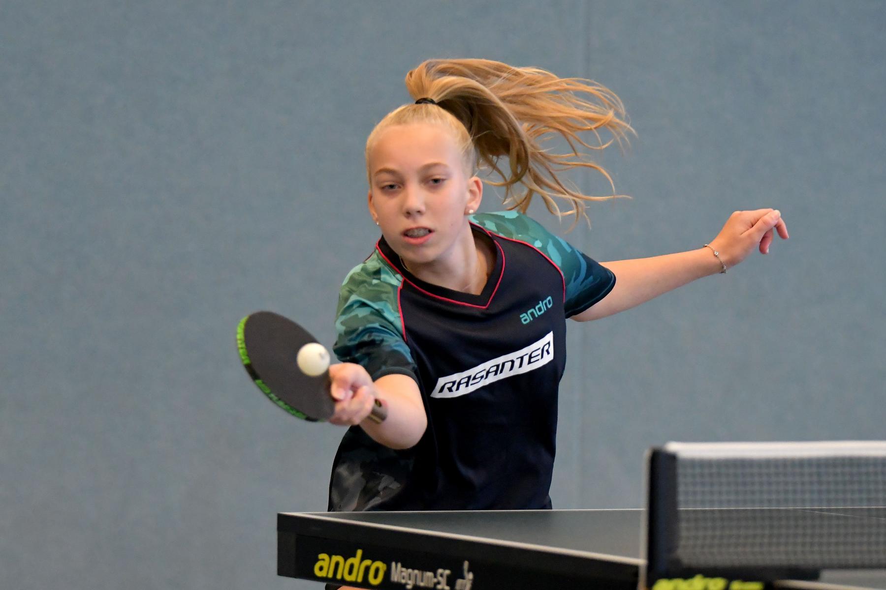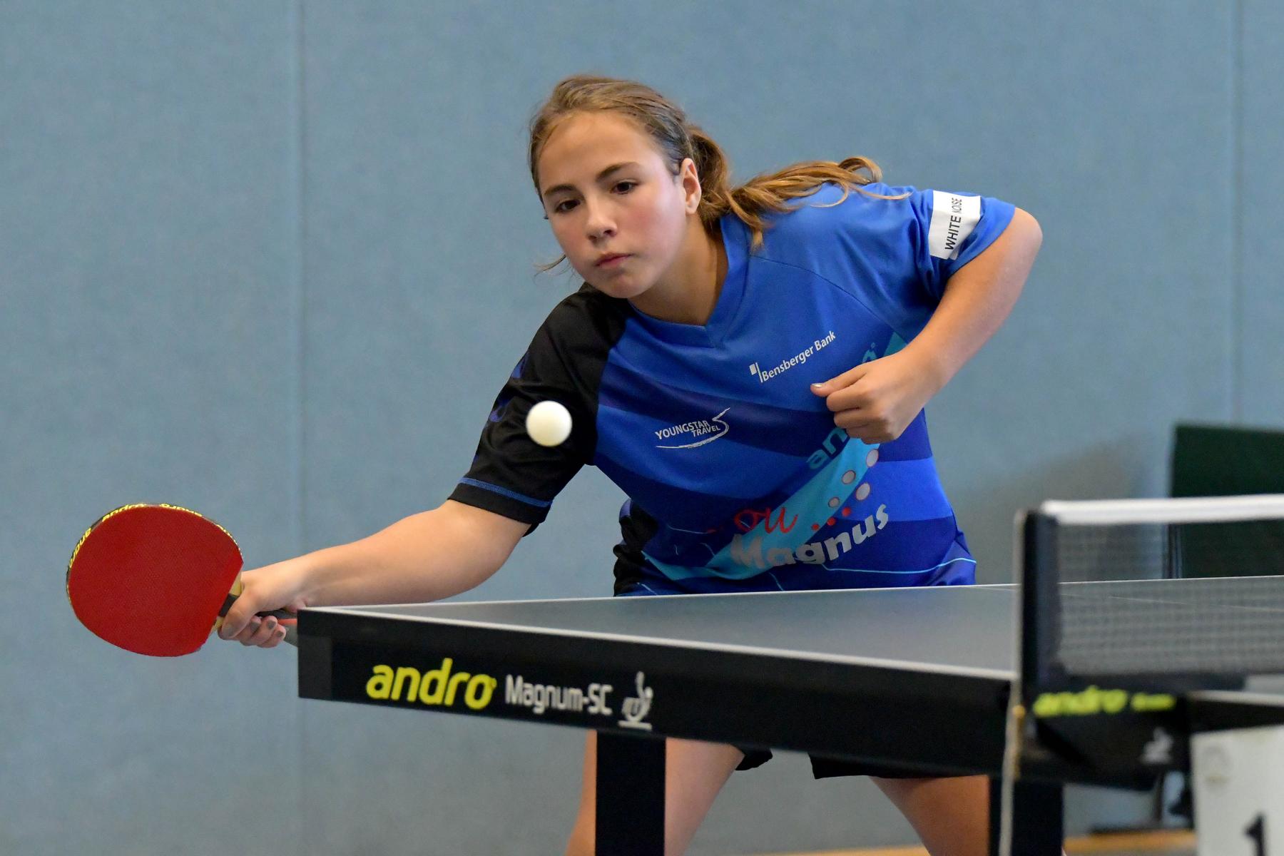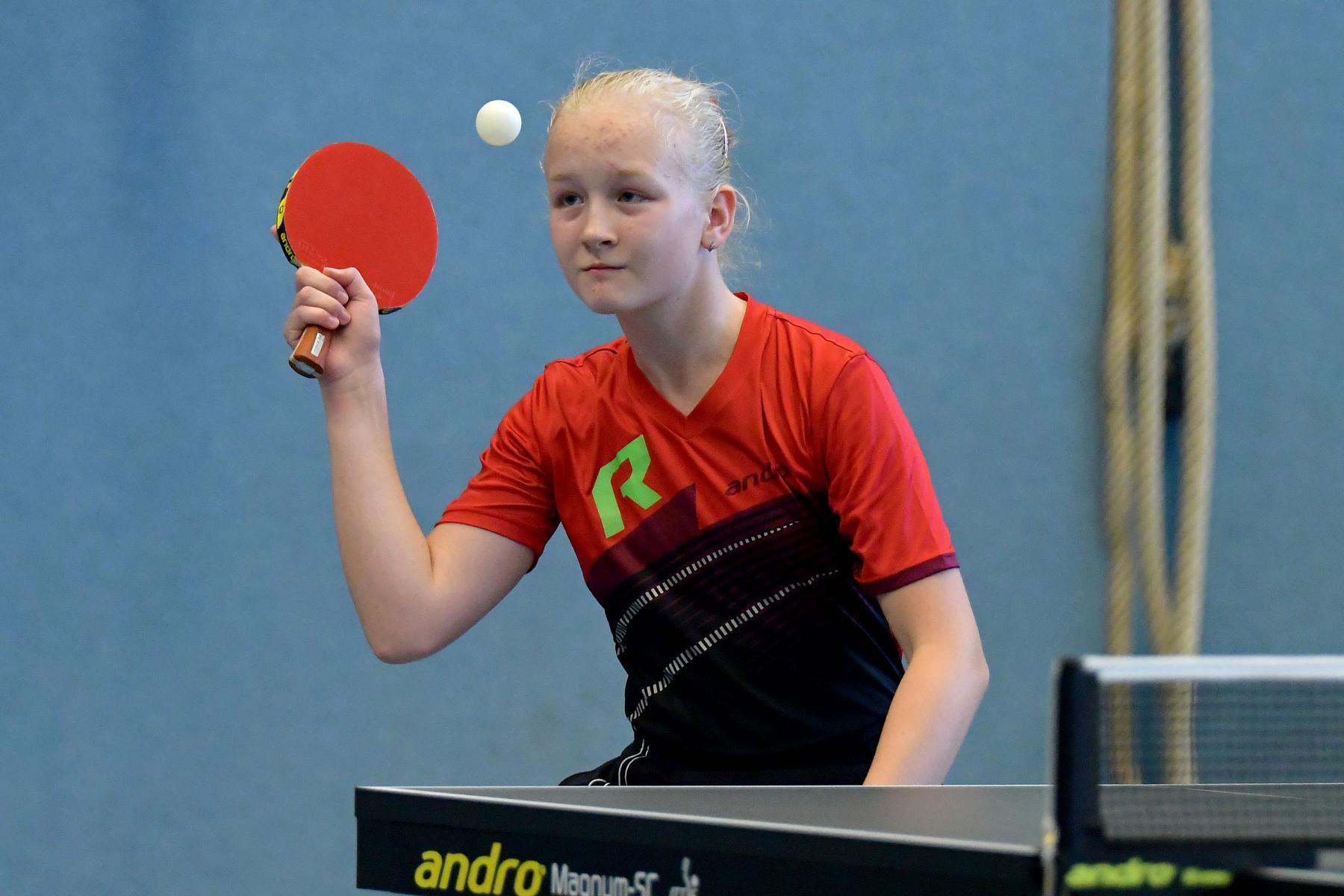 Bei den Schülerinnen konnte sich Hannah Pollmeier (TTV Hövelhof) vor ihrer Vereinskollegin Melinda Maiwald durchsetzen. Beide konnten damit die begehrten Tickets für das Bundesranglistenfinale Top 48 lösen. Direkt in der ersten Runde trafen sie aufeinander und zeigten eindrucksvoll, dass sie zu den Besten im Westen gehören. Mit 3:2 setzte sich nach einem spannenden und hochkarätigen Match Hannah durch. Dieser Sieg schenkte Hannah das notwendige Selbstvertrauen, um die nächsten Herausforderungen zu bestehen. Und diese ließen nicht lange auf sich warten. Michelle Wulff (DJK SR Cappel) sicherte sich mit 5:3 Spielen und dem besseren Satzverhältnis den dritten Platz vor Amelie Pucker (SV Bergheim). Jeweils vier Siege und vier Niederlagen standen zum Schluss für Samira Oudriss (TV Refrath) Annika Menns (Anrather TK) auf dem Turnierbogen und bedeuteten Platz fünf und sechs. Felina Busch (SC Fortuna Bonn) belegte mit 3:5 Spielen Platz sieben vor Luisa Düchting (TTG Langenich) und Katja Schütz (TSV Marienberghausen). Leider verletzte sich Medeea Grozav-Marcu (TuS Sundern) im Spiel gegen Felinda Busch so schwer, dass sie das Turnier abbrechen und sich in ärztliche Behandlung begeben musste. Auf diesem Wege wünschen wir ihr alles Gute und hoffen, dass sie bald wieder gesund ist.