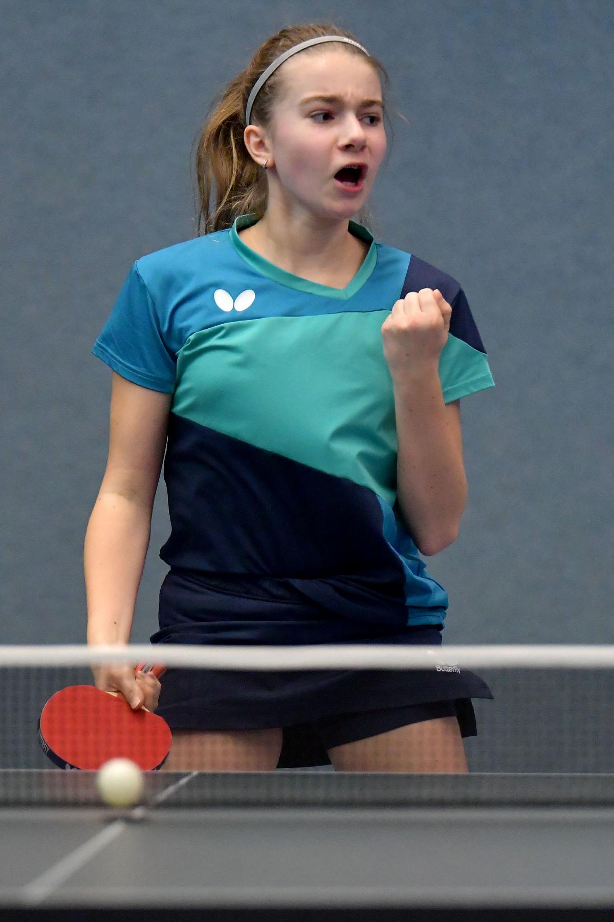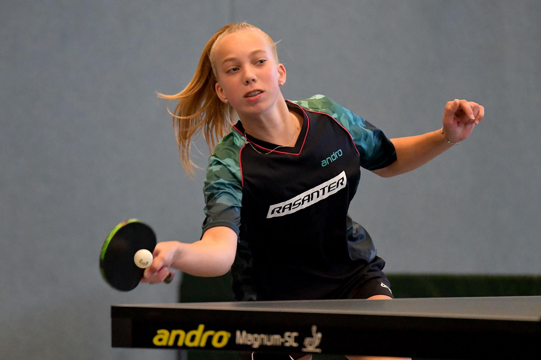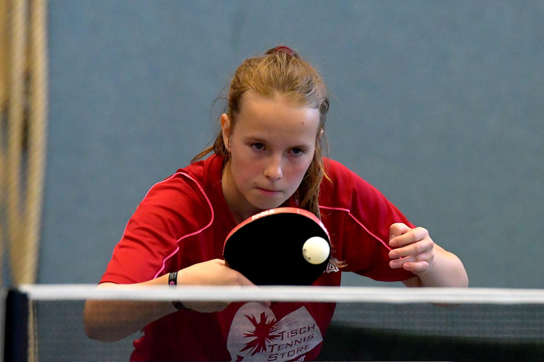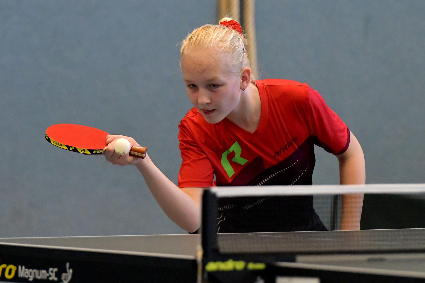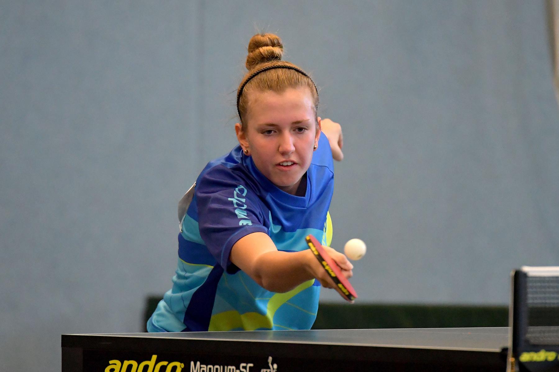 Bei den Schülerinnen konnte sich Hannah Pollmeier (TTV Hövelhof) vor ihrer Vereinskollegin Melinda Maiwald durchsetzen. Beide konnten damit die begehrten Tickets für das Bundesranglistenfinale Top 48 lösen. Direkt in der ersten Runde trafen sie aufeinander und zeigten eindrucksvoll, dass sie zu den Besten im Westen gehören. Mit 3:2 setzte sich nach einem spannenden und hochkarätigen Match Hannah durch. Dieser Sieg schenkte Hannah das notwendige Selbstvertrauen, um die nächsten Herausforderungen zu bestehen. Und diese ließen nicht lange auf sich warten. Michelle Wulff (DJK SR Cappel) sicherte sich mit 5:3 Spielen und dem besseren Satzverhältnis den dritten Platz vor Amelie Pucker (SV Bergheim). Jeweils vier Siege und vier Niederlagen standen zum Schluss für Samira Oudriss (TV Refrath) Annika Menns (Anrather TK) auf dem Turnierbogen und bedeuteten Platz fünf und sechs. Felina Busch (SC Fortuna Bonn) belegte mit 3:5 Spielen Platz sieben vor Luisa Düchting (TTG Langenich) und Katja Schütz (TSV Marienberghausen). Leider verletzte sich Medeea Grozav-Marcu (TuS Sundern) im Spiel gegen Felinda Busch so schwer, dass sie das Turnier abbrechen und sich in ärztliche Behandlung begeben musste. Auf diesem Wege wünschen wir ihr alles Gute und hoffen, dass sie bald wieder gesund ist.