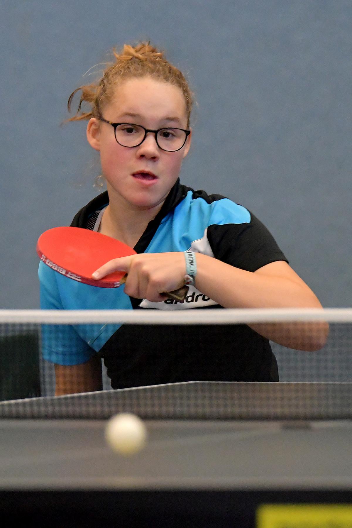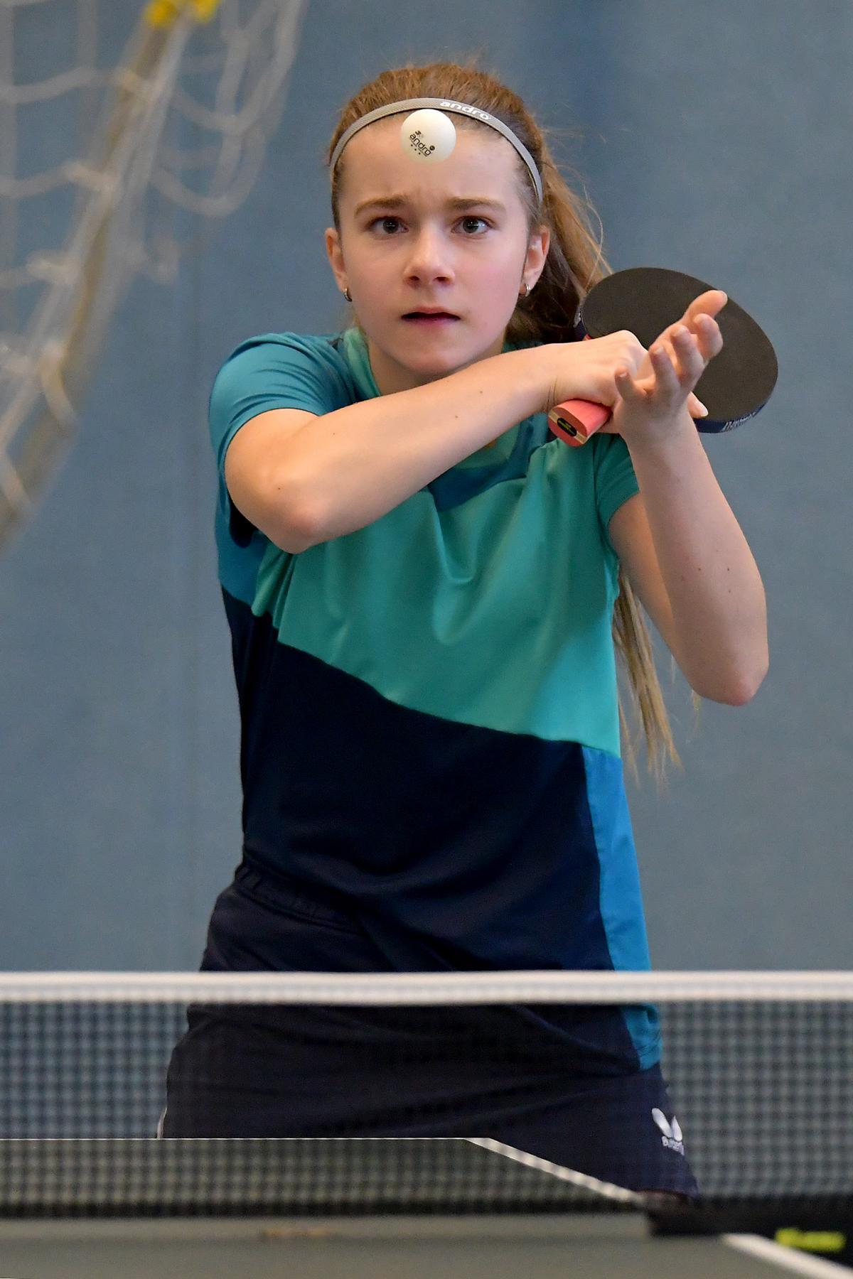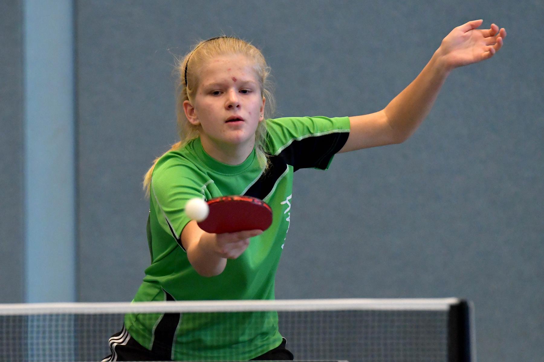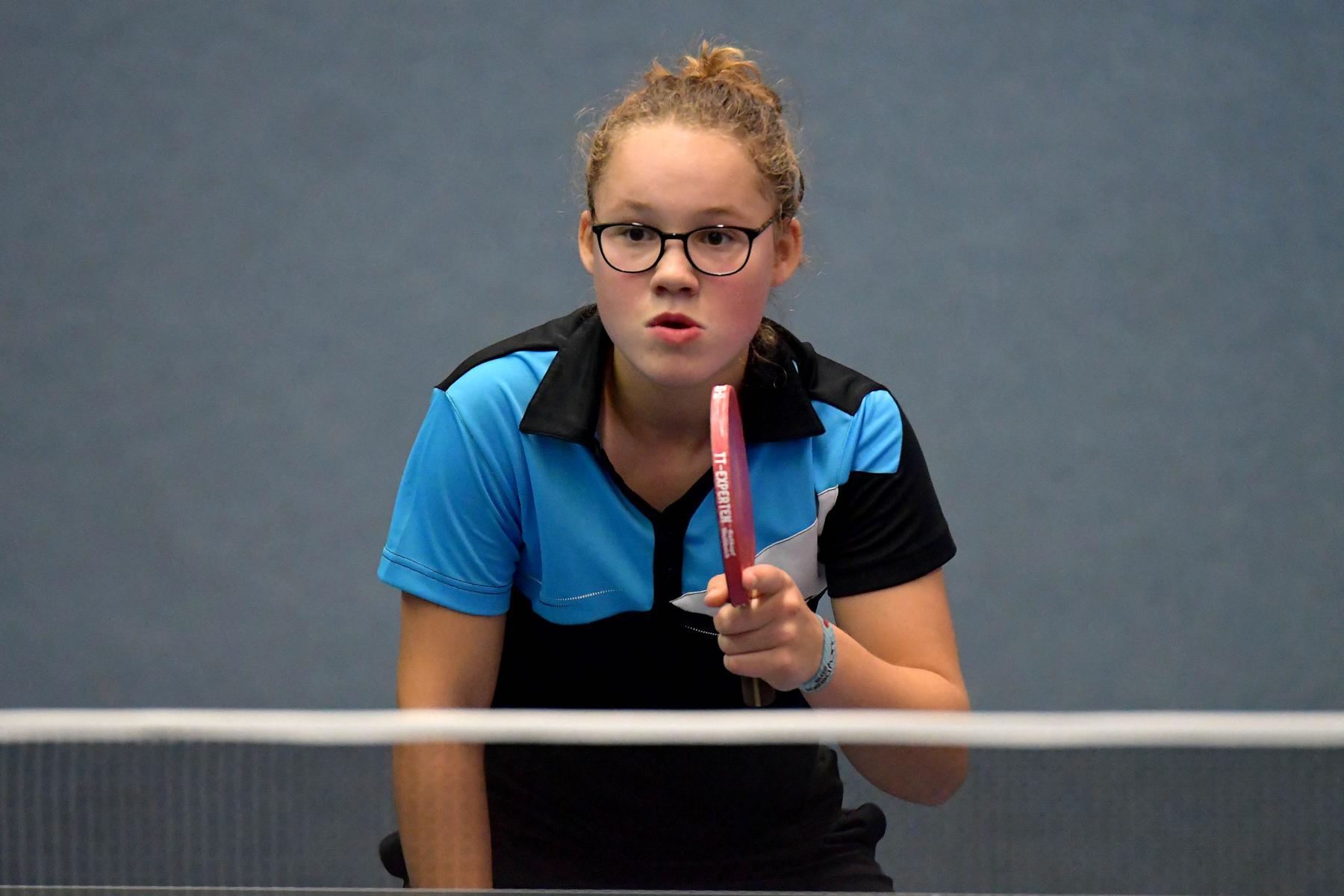 Bei den Schülerinnen konnte sich Hannah Pollmeier (TTV Hövelhof) vor ihrer Vereinskollegin Melinda Maiwald durchsetzen. Beide konnten damit die begehrten Tickets für das Bundesranglistenfinale Top 48 lösen. Direkt in der ersten Runde trafen sie aufeinander und zeigten eindrucksvoll, dass sie zu den Besten im Westen gehören. Mit 3:2 setzte sich nach einem spannenden und hochkarätigen Match Hannah durch. Dieser Sieg schenkte Hannah das notwendige Selbstvertrauen, um die nächsten Herausforderungen zu bestehen. Und diese ließen nicht lange auf sich warten. Michelle Wulff (DJK SR Cappel) sicherte sich mit 5:3 Spielen und dem besseren Satzverhältnis den dritten Platz vor Amelie Pucker (SV Bergheim). Jeweils vier Siege und vier Niederlagen standen zum Schluss für Samira Oudriss (TV Refrath) Annika Menns (Anrather TK) auf dem Turnierbogen und bedeuteten Platz fünf und sechs. Felina Busch (SC Fortuna Bonn) belegte mit 3:5 Spielen Platz sieben vor Luisa Düchting (TTG Langenich) und Katja Schütz (TSV Marienberghausen). Leider verletzte sich Medeea Grozav-Marcu (TuS Sundern) im Spiel gegen Felinda Busch so schwer, dass sie das Turnier abbrechen und sich in ärztliche Behandlung begeben musste. Auf diesem Wege wünschen wir ihr alles Gute und hoffen, dass sie bald wieder gesund ist.