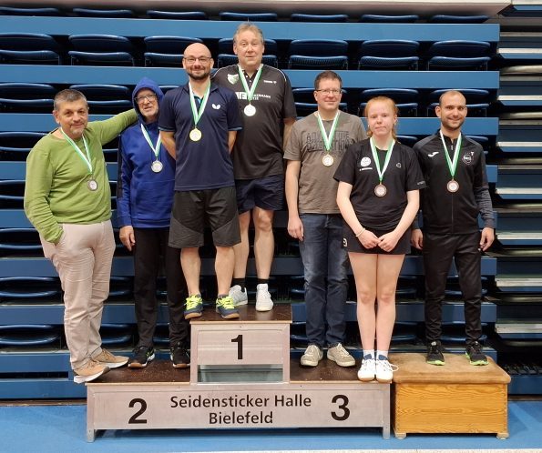Das Bielefelder Qualifikationsturnier zu den Bezirksmeisterschaften wurde am 28. und 29. September 2024 vom TSVE Bielefeld in der Seidensticker-Halle ausgerichtet. Es folgen hier die Fotos von den Siegerehrungen der Erwachsenen des ersten Tages (alle Fotos stammen von Julia Fischer):
