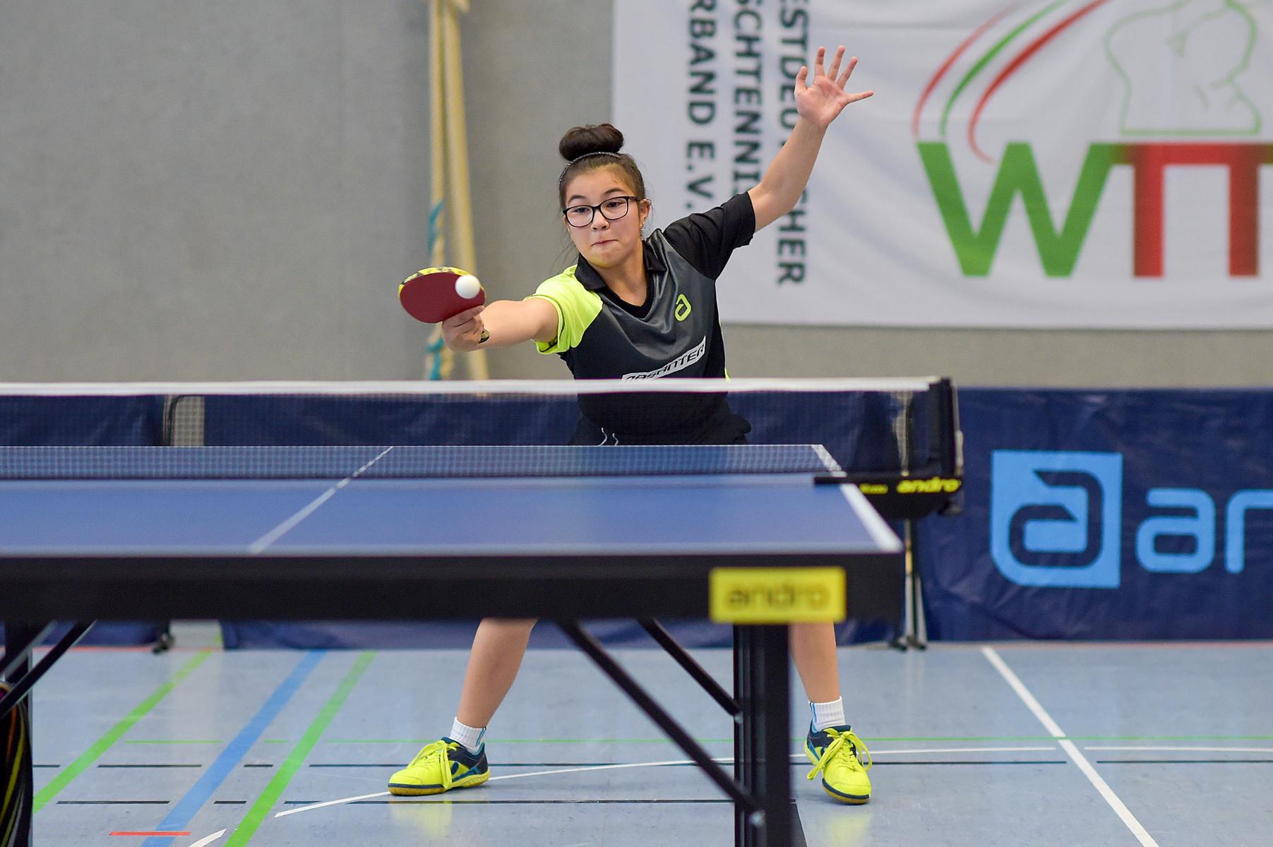 Für eine positive Überraschung sorgte in dieser Konkurrenz Felina Busch (SC Fortuna Bonn). Die Linkshänderin musste lediglich Hannah gratulieren und belegte damit den begehrten zweiten Platz. Welch ein gutes Turnier Felina spielte, zeigt auch ihre Satzbilanz von 19:6. Damit verlor sie nur genauso viele Sätze wie die souveräne Siegerin und war sehr glücklich mit dem Ergebnis: „Ich freue mich sehr über den zweiten Platz. Ich habe die letzten Wochen viel trainiert und freue mich das es geklappt hat eine sehr gute Platzierung auf Westdeutscher Ebene zu erreichen. Ich bin überwältigt und freue mich umso mehr, dass ich das TOP 48 spielen darf. Ich bedanke mich bei meinem Trainer Jonas Schmidt, der mich super durchs Turnier gebracht hat.“