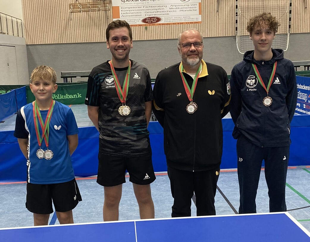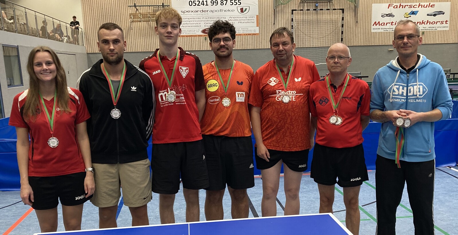 Die diesjährigen Regionaleinzelmeisterschaften für den Kreis Güterloh und den TuS Wadersloh wurden vom 26. bis zum 28. September 2025 vom SV Spexard in der Spexarder Dreifach-Sporthalle ausgerichtet. Es folgen hier die Fotos von den Siegerehrungen der Erwachsenen und den SeniorInnen (alle Fotos stammen von Ludger Terhechte):