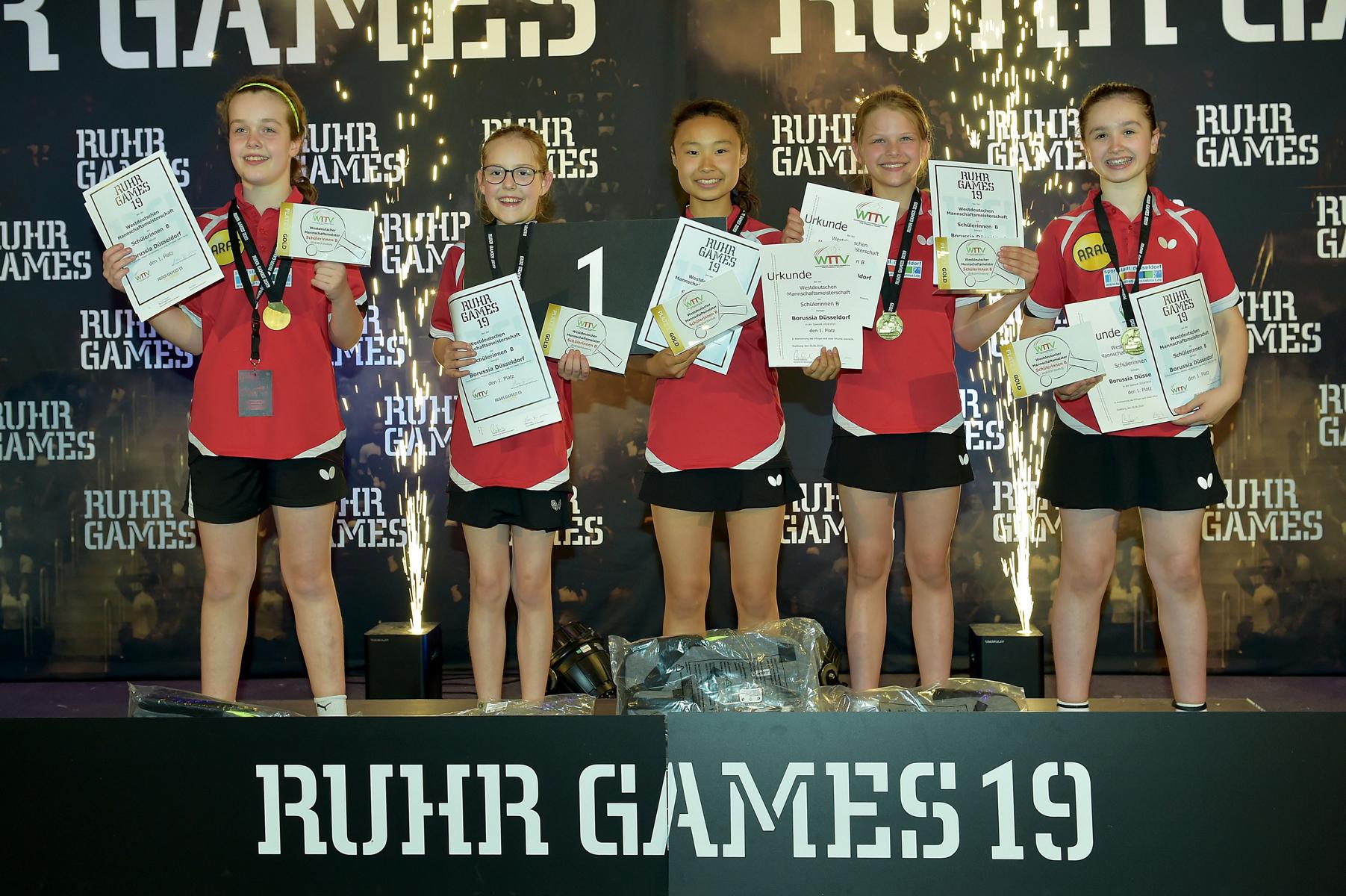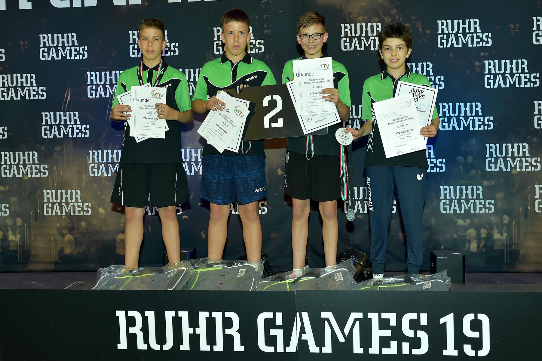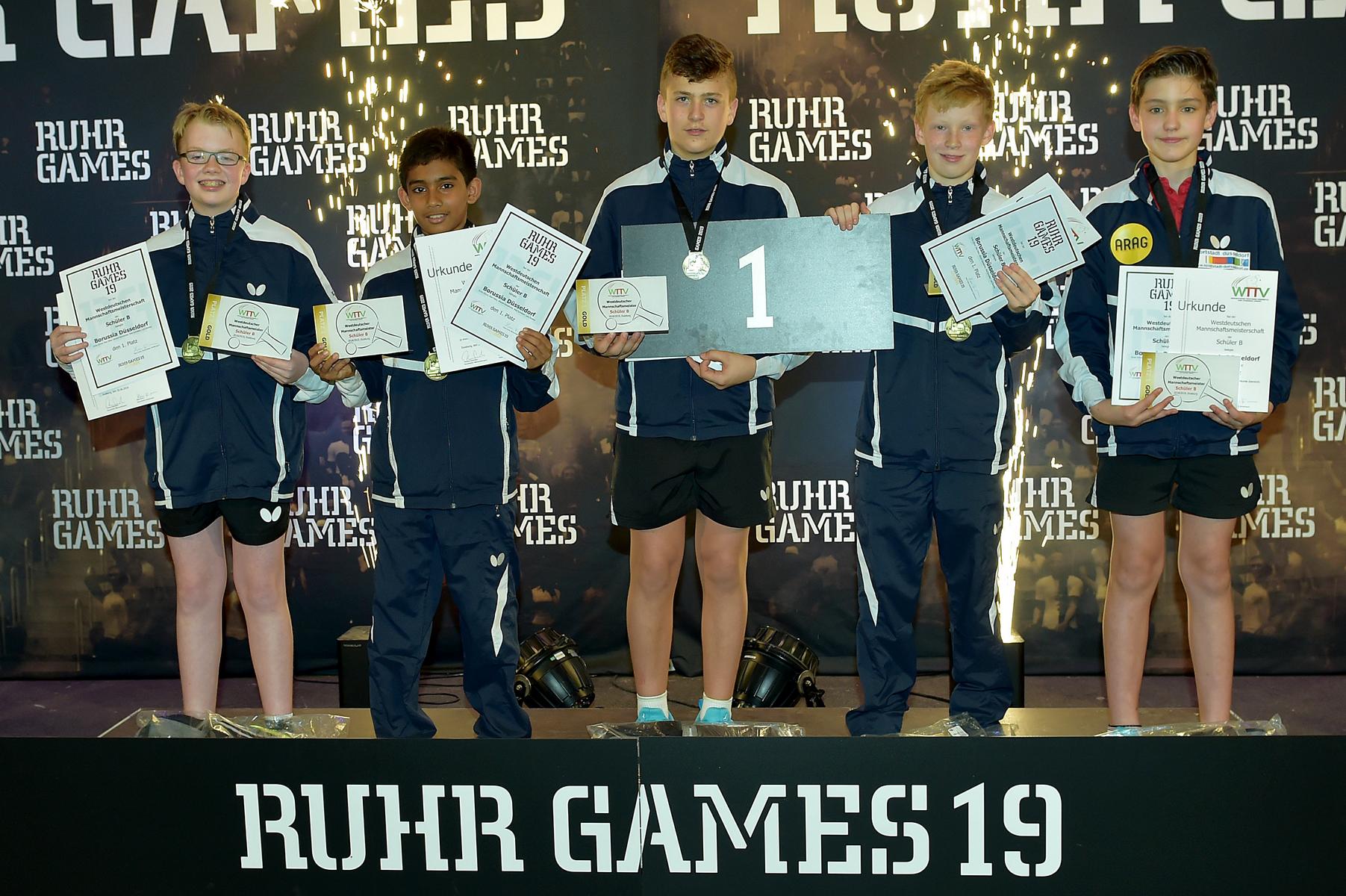 Bei den Schülern B wurde Borussia Düsseldorf mit Rian Patra, Emilo Schulz und Emil Schreiber der Favoritenrolle gerecht. Im Finale ließen die Borussen dem TTV Letmathe (Arda Yenen, Sebastian Koch und Simon Benz) beim 4:0 Kantersieg nur einen einzigen Satzgewinn zu.