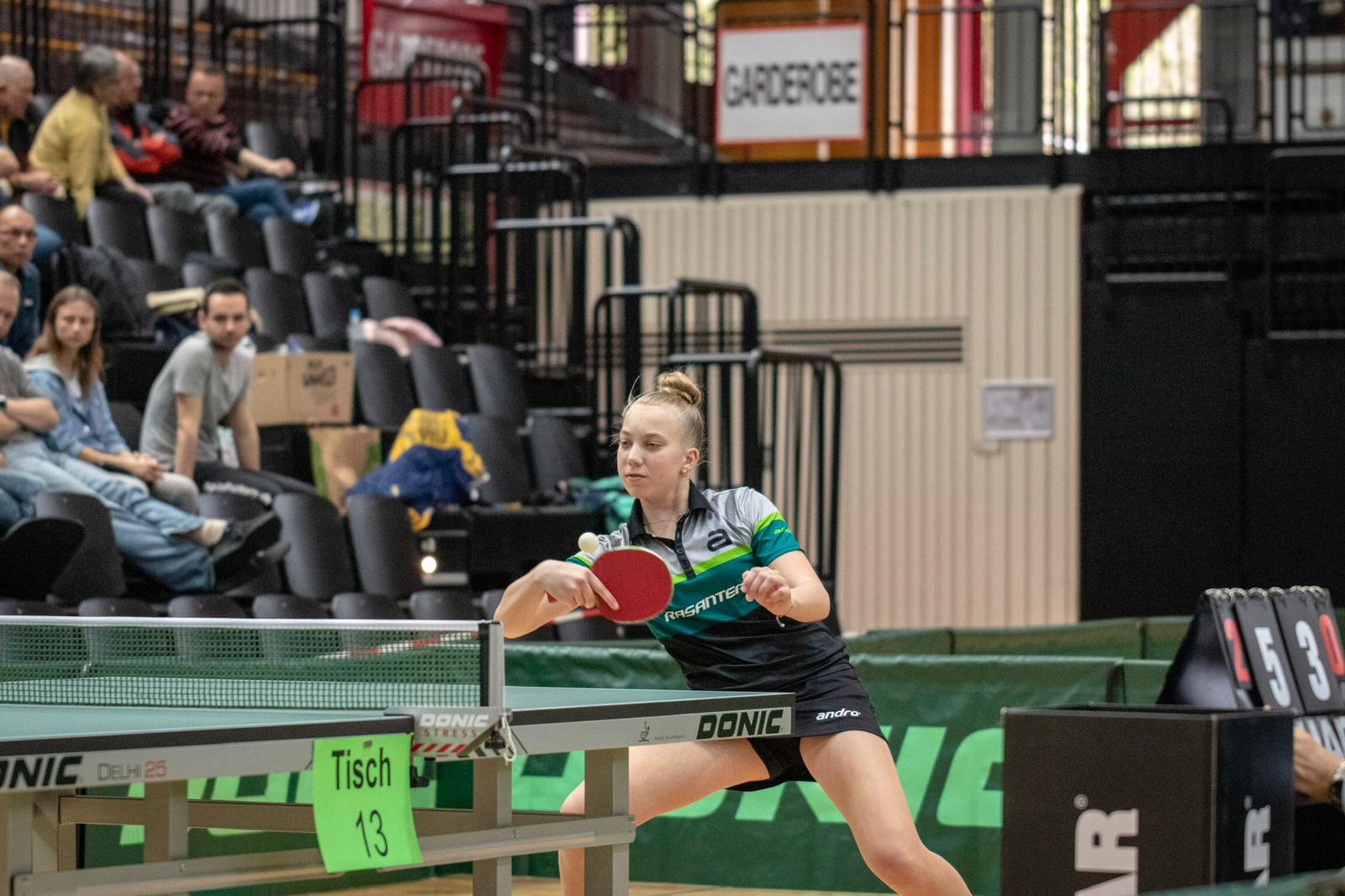 Dort ging es dann gegen die Auswahl aus Hessen, die später auch das Turnier gewinnen konnte. Leonie Berger, die gesundheitlich etwas angeschlagen war, kam im Einzel nicht zum Einsatz. Die Mädchen haben aber gegen Sophia Klee, Anastasia Bondareva und Ayumu Tsutsui gute Chancen gehabt. Auch das Doppel von Berger/Schönau gegen Klee/Bondareva ging denkbar knapp verloren. Leider war es eine 0:4-Niederlage.