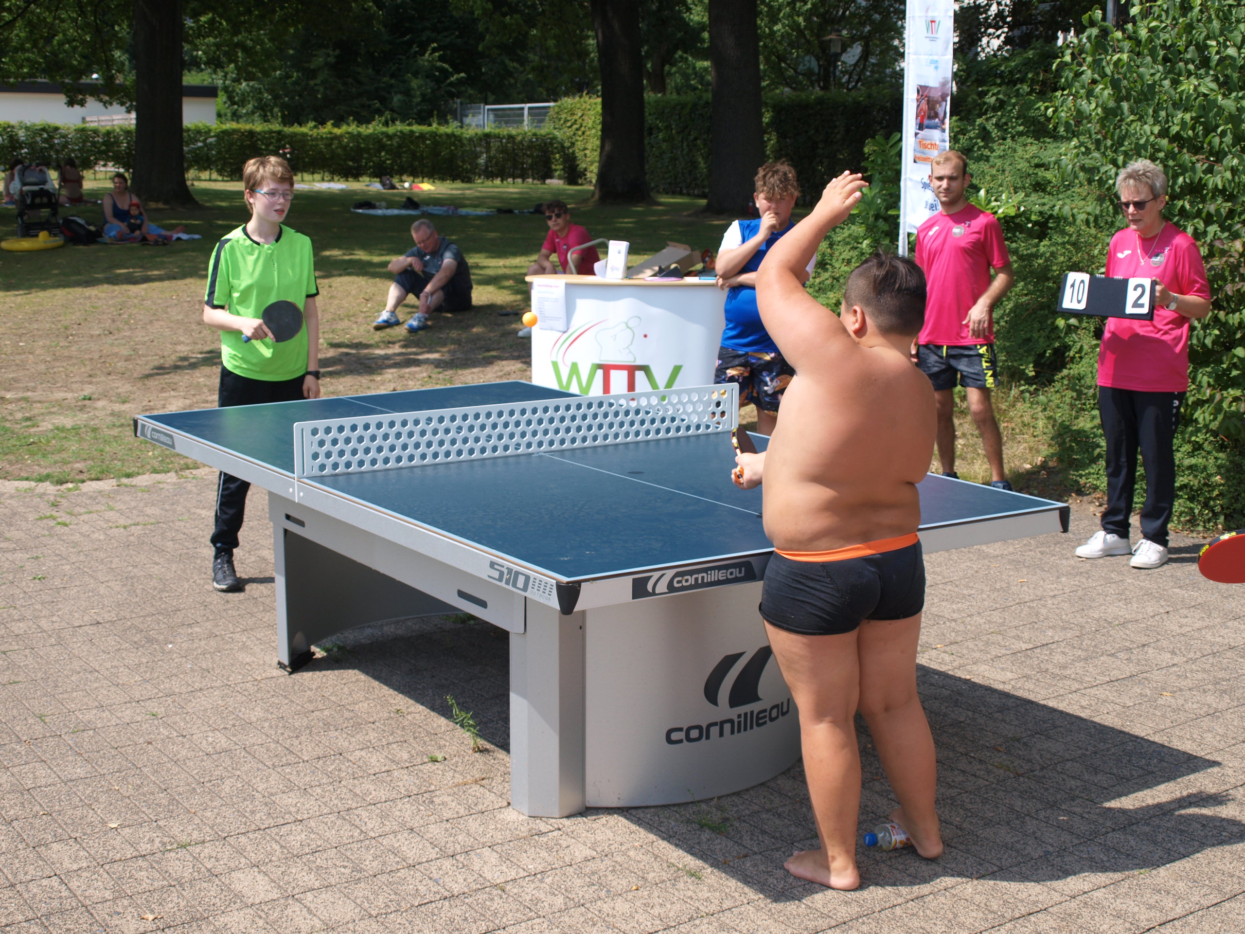 Trotz Sonnenschein und 26° war das Freibad „Wiesenbad“ in Bielefeld nur wenig besucht. Dennoch konnte die erste Austragung des WTTV-Schwimmbad-Cups an einem Steintisch durch den TPSV Bielefeld erfolgreich durchgeführt werden. In drei Vorrunden konnten sich die jeweils beiden ersten für die Finalrunde qualifizieren, bei der um kleine Preise gespielt wurde.