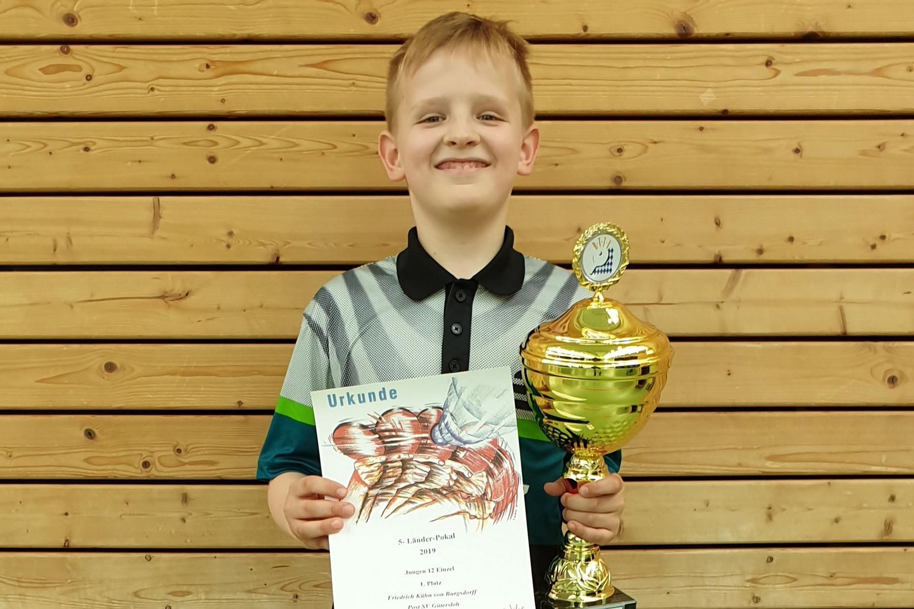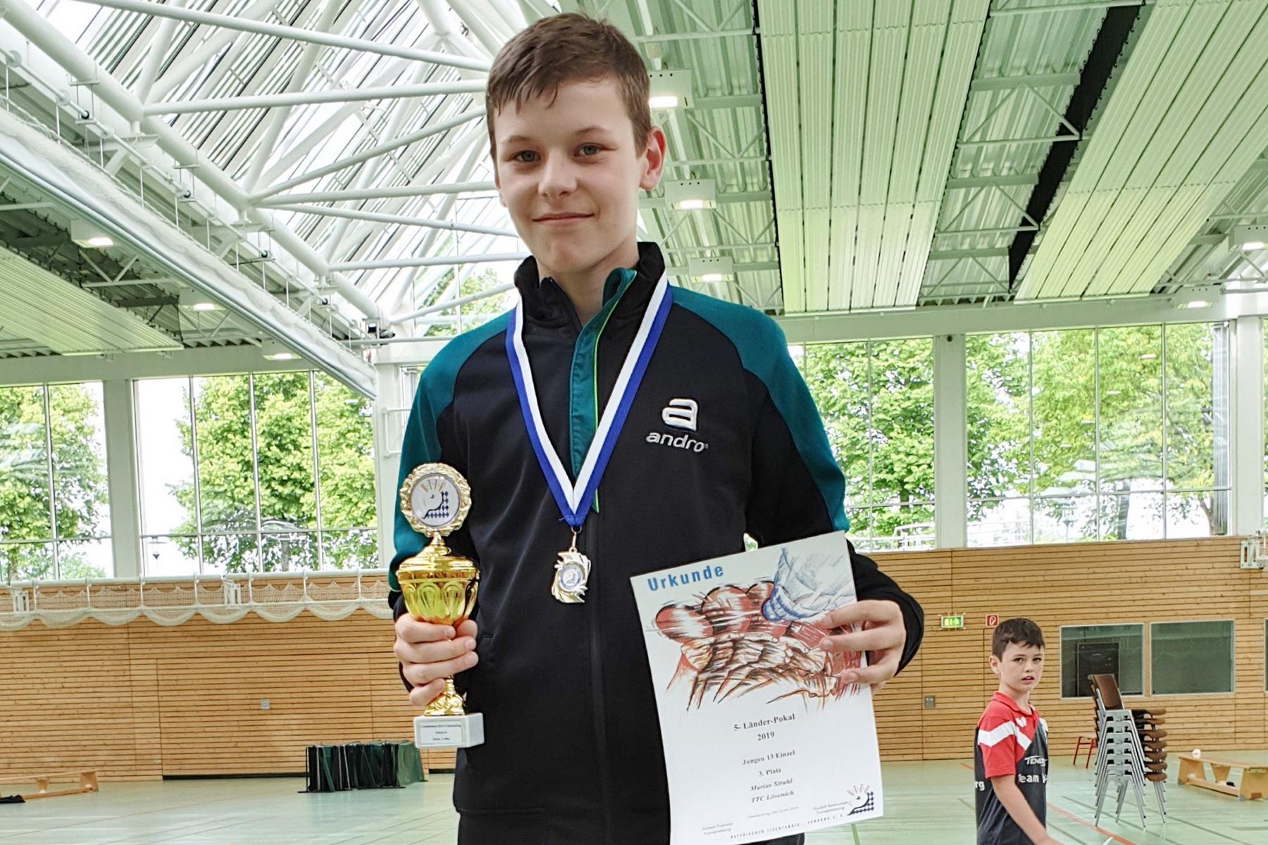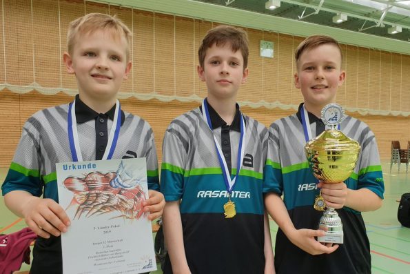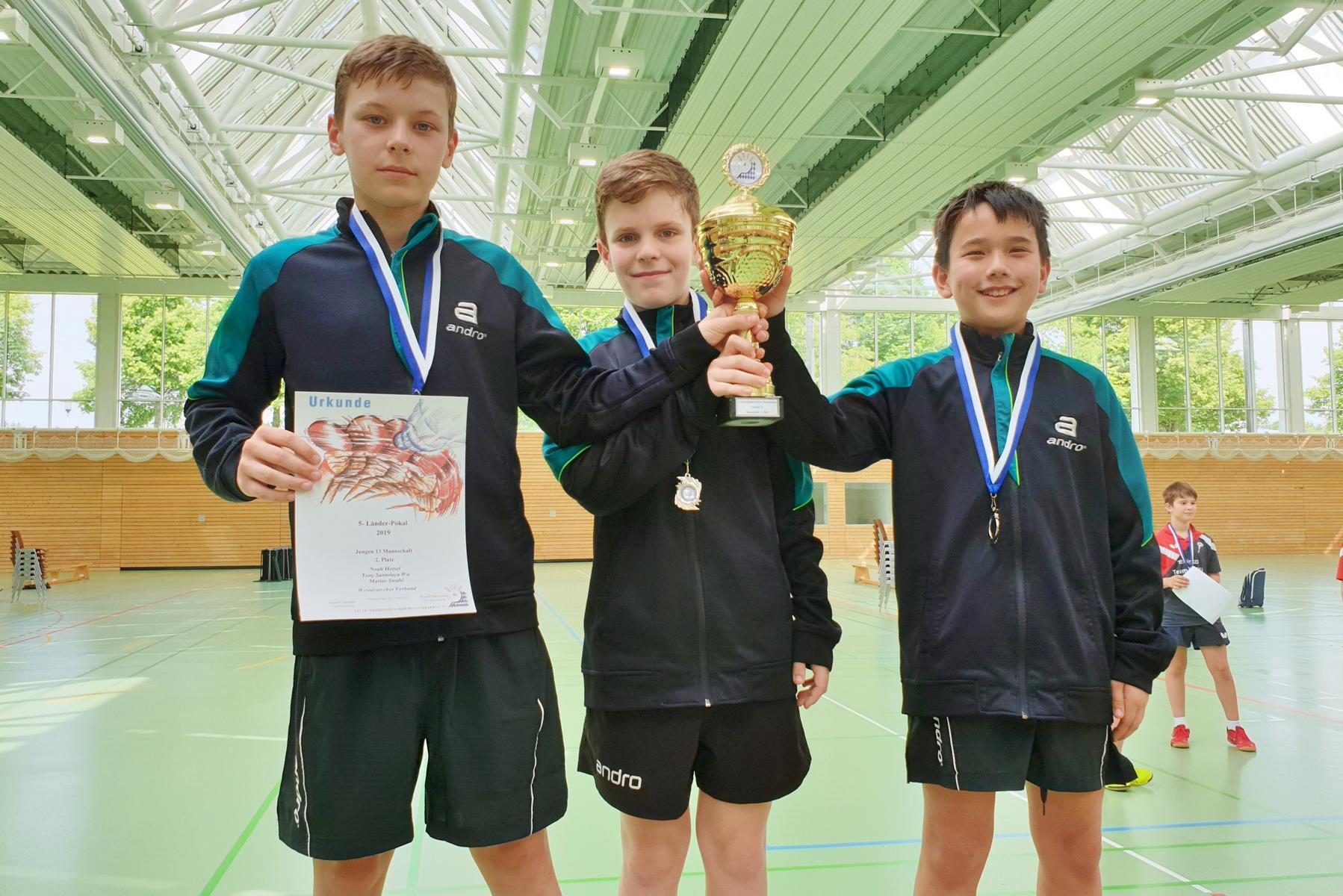 Die Jungen-Mannschaft mit Marius Strahl (TTC Lövenich), Tony Santolaya Wu (TuS Sundern) und Noah Hersel (1. FC Köln) begann mit einem überraschend deutlichen 9:0-Erfolg gegen die Niedersachsen. Am Sonntag kam es dann um 9 Uhr zu der Begegnung gegen den Favoriten aus Baden-Württemberg. Marius brachte die Mannschaft, nach sehr gutem Spiel gegen Manuel Prohaska, in Führung. Leider gingen die nächsten fünf Einzel an die etwas stärkeren Baden-Württemberger. Allerdings wurden drei dieser Spiele erst im Entscheidungssatz entschieden. Noah konnte gegen Kökten noch einen 3:2-Sieg erkämpfen. Am Ende stand es 2:7. In den internen Duellen gewann Noah sowohl gegen Marius als auch gegen Tony. Marius konnte gegen Tony gewinnen. Im folgenden Spiel gegen die Hessen kam es erneut zu vielen spannenden Duellen. Vier der neun Einzel gingen in den Entscheidungssatz. Marius gewann alle drei Partien. Noah musste sich lediglich dem stark spielenden Simon Hans mit 2:3 geschlagen geben. Und Tony konnte mit einem 3:2-Sieg gegen Simon Hans auch ein Punkt zum 6:3-Gesamtsieg beisteuern. Am Pfingstmontag stand dann noch die Partie gegen die Bayern an. Hier gewannen Marius, Noah und Tony deutlich mit 9:0. Lediglich ein Satz wurde in den neun Einzeln verloren. In der Einzelkonkurrenz kam Tony mit einer 7:7-Bilanz auf den 8. Platz; Noah wurde mit einer starken 11:3-Bilanz 4. und Marius konnte aufgrund des besseren Satzverhältnisses gegenüber Noah sich über die Bronzemedaille freuen.