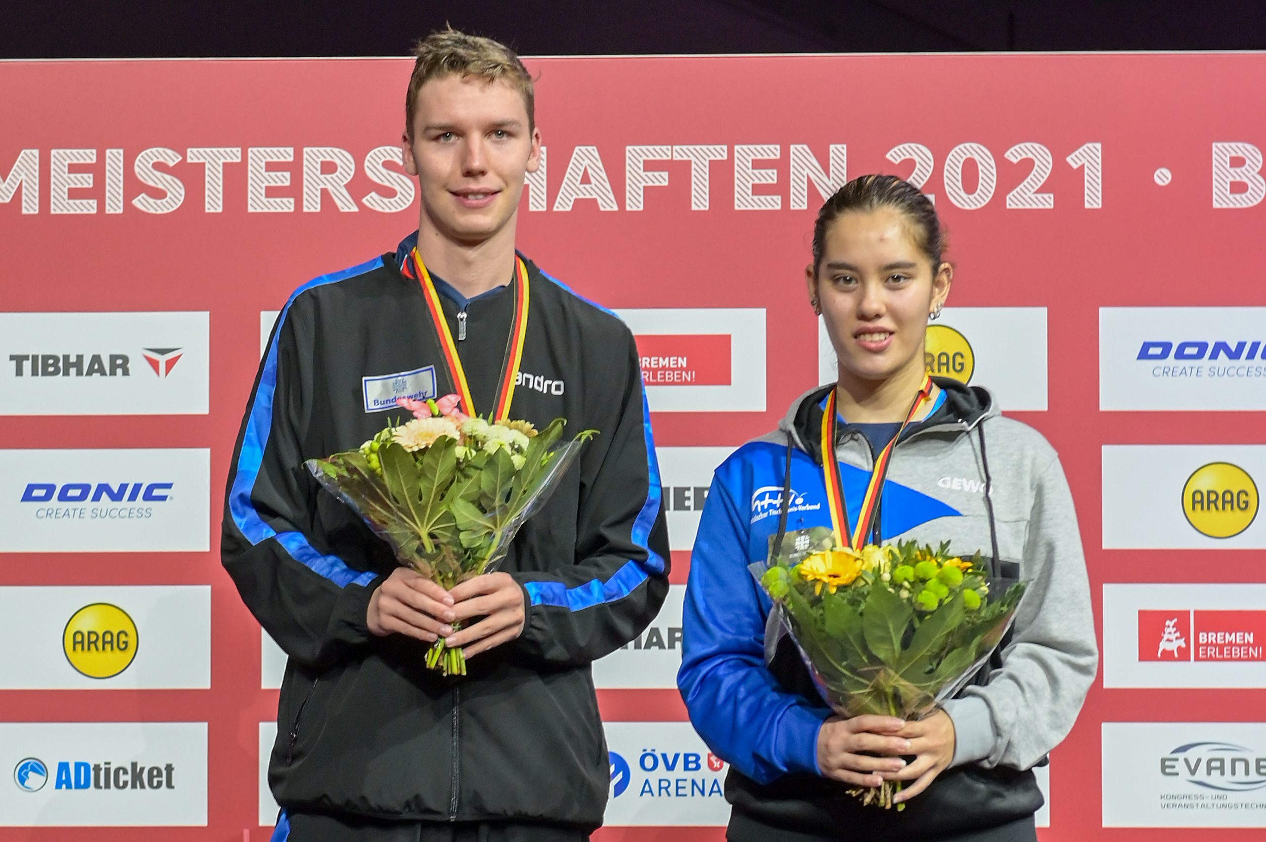 Ebenfalls sehr überzeugend stellten sich die Leistungen im Mixed dar. Hier waren vier Herren des WTTV mit ihren Partnerinnen aus anderen Landesverbänden ab dem Halbfinale unter sich. Tobias Hippler und Franziska Schreiner (TSV 1909 Langstadt) holten sich nach Platz 3 im Vorjahr mit vier souveränen 3:0-Erfolgen den ersehnten Titel. Platz 2 belegte Erik Bottroff (BV Borussia Dortmund) gemeinsam mit Katharina Michajlova (TTC G.-W. Staffel 1953). Auf Rang 3 kamen Michael Servaty (SC Buschhausen) mit Kristin Lang (SV DJK Kolbermoor) sowie Gianluca Walther mit Anastasia Bondareva (TTG Bingen/Münster-Sarmsheim) ein.