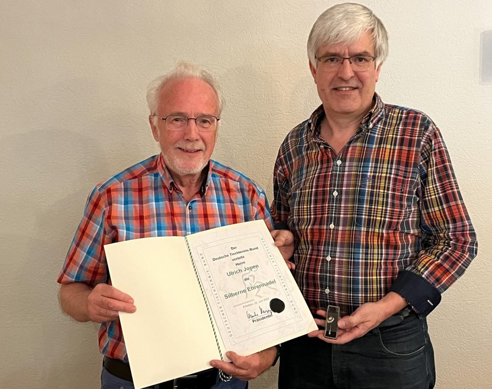 WTTV-Geschäftsführer Michael Keil war der Einladung nach Erkelenz durch den Vorstand gefolgt: „Ich komme bereits seit einigen Jahrzehnten zur Kreisversammlung, um bei Verbandsthemen Rede und Antwort zu stehen und besondere Ehrungen vorzunehmen. Bei der heutigen Ehrung geht es nun sogar um Verdienste auf Bundesebene.“ Uli Jopen, Vorsitzender des TTC Hardt-Venn, nahm die Silberne Ehrennadel des DTTB unter Applaus der Anwesenden entgegen. Für die zehn Jahre währende Tätigkeit als stellvertretender Vorsitzender des DTTB-Bundesgerichts wurde er geehrt. Jopen ist aber auch seit knapp 30 Jahren Vorsitzender des TTC Hardt-Venn, hatte den Vorsitz im Kreis- und Bezirks-Spruchausschuss und bis 2019 im WTTV-Kontrollausschuss inne. Im Alter von neun Jahren begann er mit dem Tischtennisspielen. „Der Spaß an der juristischen Tätigkeit hat mein Berufsleben und auch mein Hobby geprägt“, sagt Jopen. „Es freut mich, dass meine Arbeit auch an höchster Stelle, im DTTB, wahrgenommen wird.“ 2021 wurde er bereits mit der Goldenen Ehrennadel des WTTV ausgezeichnet. (Alle Ehrungen: s. Anhang)