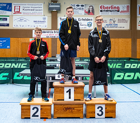 Bei den Jungen starteten neben dem an Nr. 1 gesetzten Tobias Sältzer (TV Refrath), Andre Bertelsmeier (Westfalia Rhynern) , Wim Verdonschot (TTC Hagen), Friedrich Kühn von Burgsdorff  (Post SV Gütersloh), László Mohácsy (Borussia Düsseldorf) und Emilo Schulz (TTC Lövenich). „Nachrutschen“ konnte noch Noah Hersel (TTG Niederkassel).