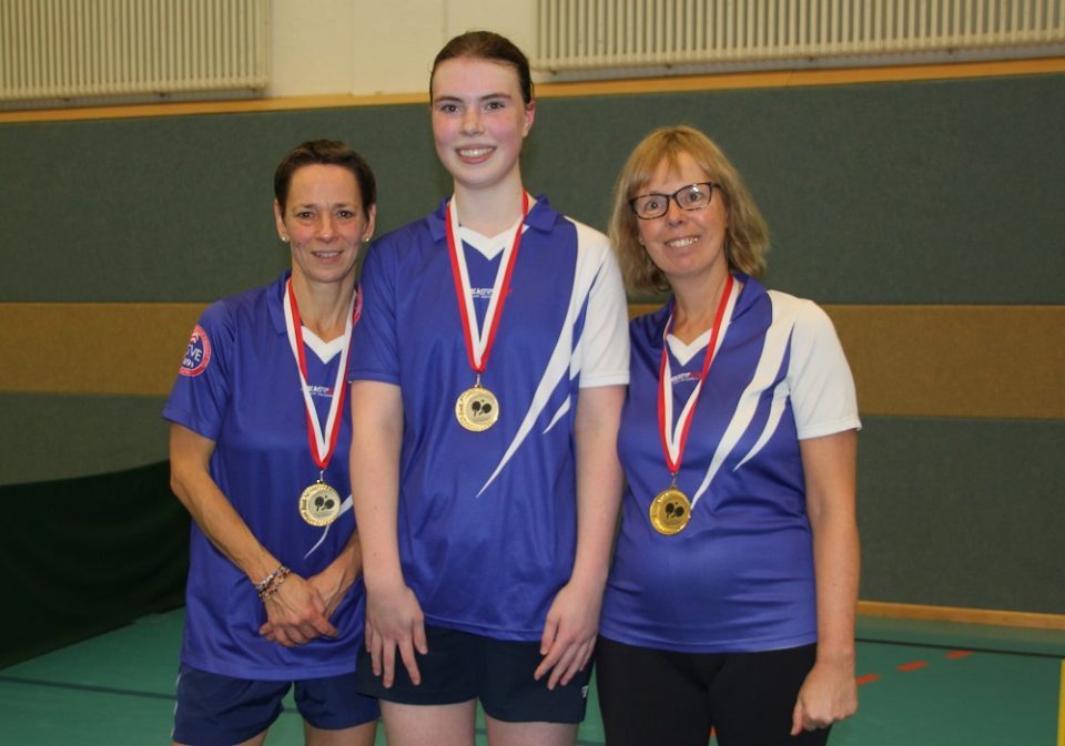 Ramona Lau (TSVE 1890 Bielefeld) holte den ersten Punkt für ihre Mannschaft durch den 3:0 Sieg (11, 9, 7) gegen Silvia Steinsiek (BTG 1848 Bielefeld). Im nächsten Spiel konterte BTG und schaffte den Ausgleich zum 1:1 – Heike Büscher-Kley setzte sich mit 3:1 (-5, 9, 9, 7) gegen Katrin Sommerfeld (TSVE) durch. Dann war wieder TSVE 1890 Bielefeld am Zug: Julia Fischer verlor gegen Jutta Wedig (BTG Bielefeld) zwar den ersten Satz mit 7:11 – doch der 2. Satz ging in der Verlängerung mit 15:13 an Julia Fischer – und dann holte sie sich auch die Sätze 3 (11:8) und 4 (11:8) zum 3:1 Spielgewinn und zur 2:1 Führung für ihre Mannschaft. Das hartumkämpfte Doppel brachte dann die Vorentscheidung zugunsten des TSVE 1890 Bielefeld. Ramona Lau/Julia Fischer (TSVE) verloren den ersten Satz mit 9:11 – doch sie gaben nicht auf und holten sich die Sätze 2 (11:8) und 3 (11:7) zur 2:1 Führung – Heike Büscher-Kley/Silvia Steinsiek (BTG) glichen mit dem Gewinn des 4. Satzes (11:6) zum 2:2 aus. Doch da wurden auf beiden Seiten nochmal alle Kräfte mobilisiert und am Ende setzte sich der TSVE im 5. Satz mit 12:10 durch zum 3:2 Sieg und Zwischenstand 3:1 für TSVE. Im anschließenden Einzel setzte sich dann Ramona Lau in einem heißumkämpften Spiel mit 3:2 (-5, 7, 7, -6, 8) gegen Heike Büscher-Kley durch zum Siegpunkt für den TSVE 1890 Bielefeld.