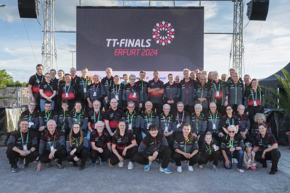 Bei der zweiten Auflage der Deutschen TT-Finals in Erfurt Anfang Juni 2025 sind neben Damen und Herren, Jugend 15 und 19 sowie Leistungsklassen auch rund 500 Seniorinnen und Senioren am Start. Für die Organisation des nationalen Top-Events werden rund 150 Volunteers gesucht. Bewerben kann man sich jetzt schon.