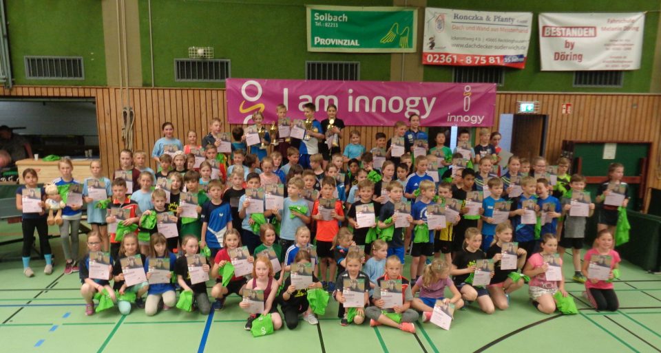 Sophia Streuer und Ferdinand Schulte lösen die Fahrkarte nach Trier. 91 Kinder in vier Konkurrenzen waren beim Verbandsfinale der mini-Meisterschaften in Recklinghausen-Suderwich am Start. Schon zum 14. Mal stellte die SG Suderwich mit ihren zahlreichen Helfern optimale Bedingungen für alle Beteiligten zur Verfügung. Ob als Zähler, Poolbetreuer oder bei der Organisation der Speisen und Getränke: Auf die Mitglieder und Eltern des SG Suderwich war Verlass. Zusätzlich sorgte das eingespielte WTTV-Team mit Erwin Daniel, Norbert Weyers, Pierre Ambus, Marco Knapp und Tim Niggemann für einen schnellen und reibungslosen Ablauf der Spiele und wurden dabei von Oberschiedsrichterin Elisabeth Hölter unterstützt.