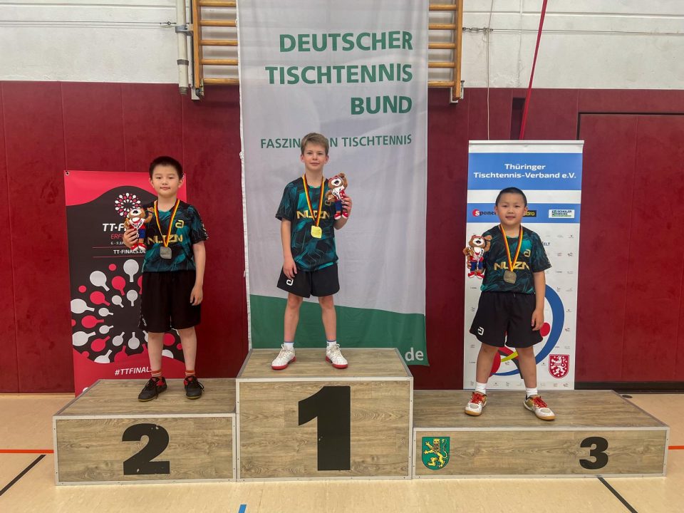 Nico-Hughie Krosta (Burtscheider TV) und Ron Digel (TTC indeland Jülich) sicherten sich jeweils den vierten Gruppenplatz in der Vorrunde. Junde Zang (SV DJK Holzbüttgen), Luka He (Borussia Düsseldorf), Mats Roland (DJK Adler Brakel) und Caspar Mayer-Uellner (Burtscheider TV) dominierten jeweils ihre Gruppen und wurden ungeschlagen Gruppensieger und zogen ins Viertelfinale ein. Nico-Hughie konnte in der K.O.-Runde drei Siege feiern und musste lediglich Simon Zöllner gratulieren. Somit landete Nico-Hughie auf einem tollen 9. Platz in der Gesamtwertung. Ron konnte sich auch drei Siege erspielen und musste lediglich am Ende des Turniers Levin Würzberger aus Baden-Württemberg gratulieren. Ron kann mit seinem 6. Platz und den gezeigten Leistungen sehr zufrieden sein.