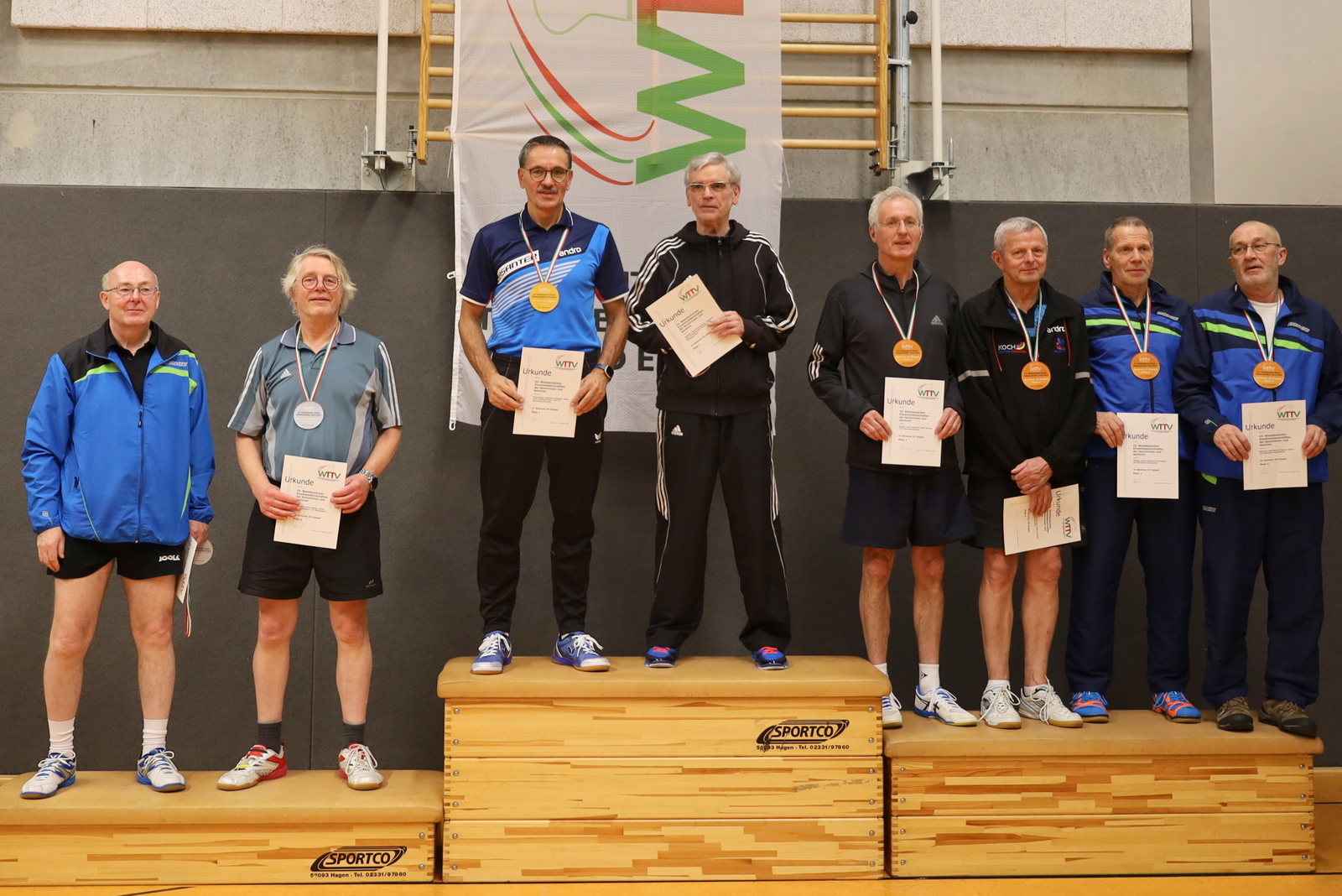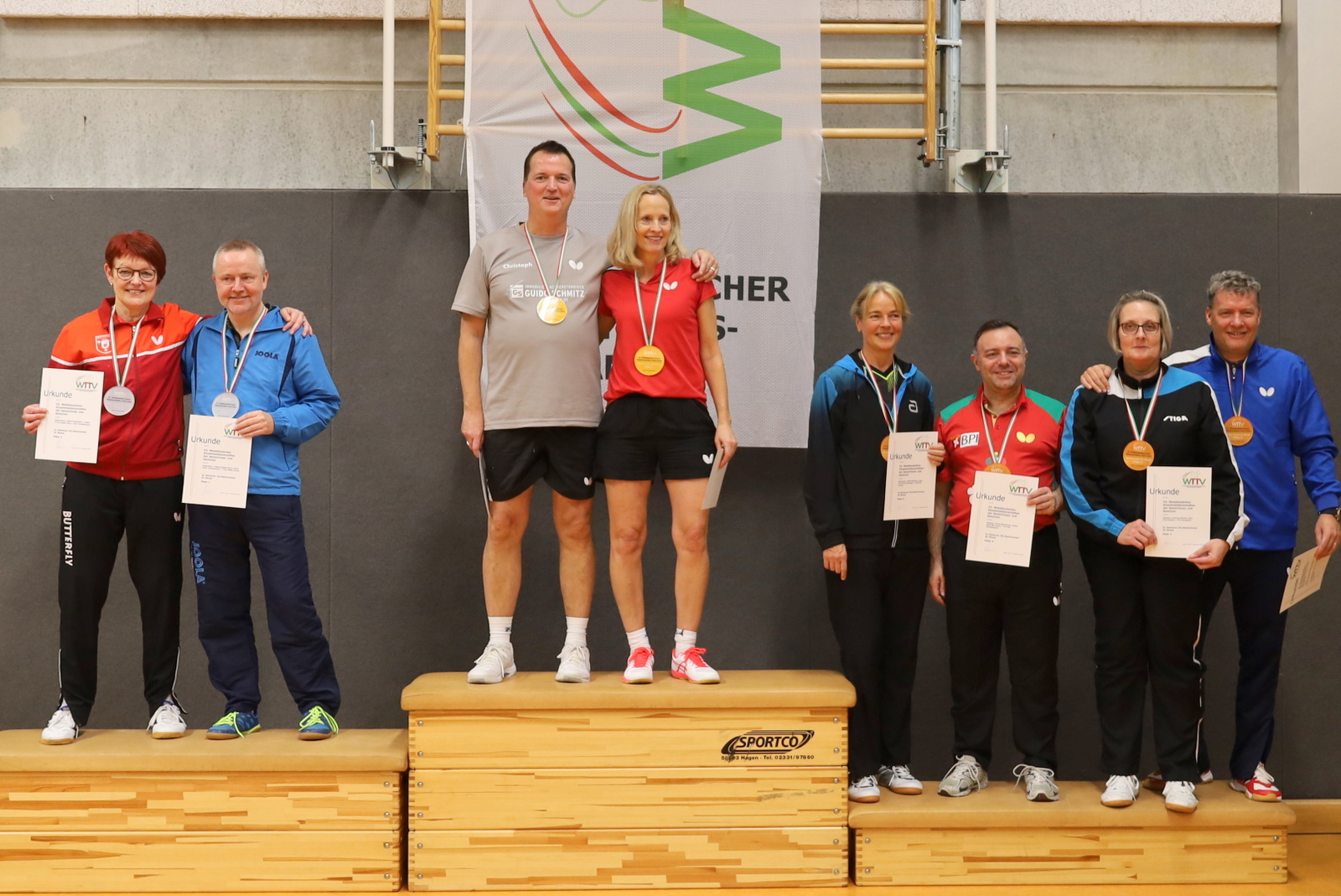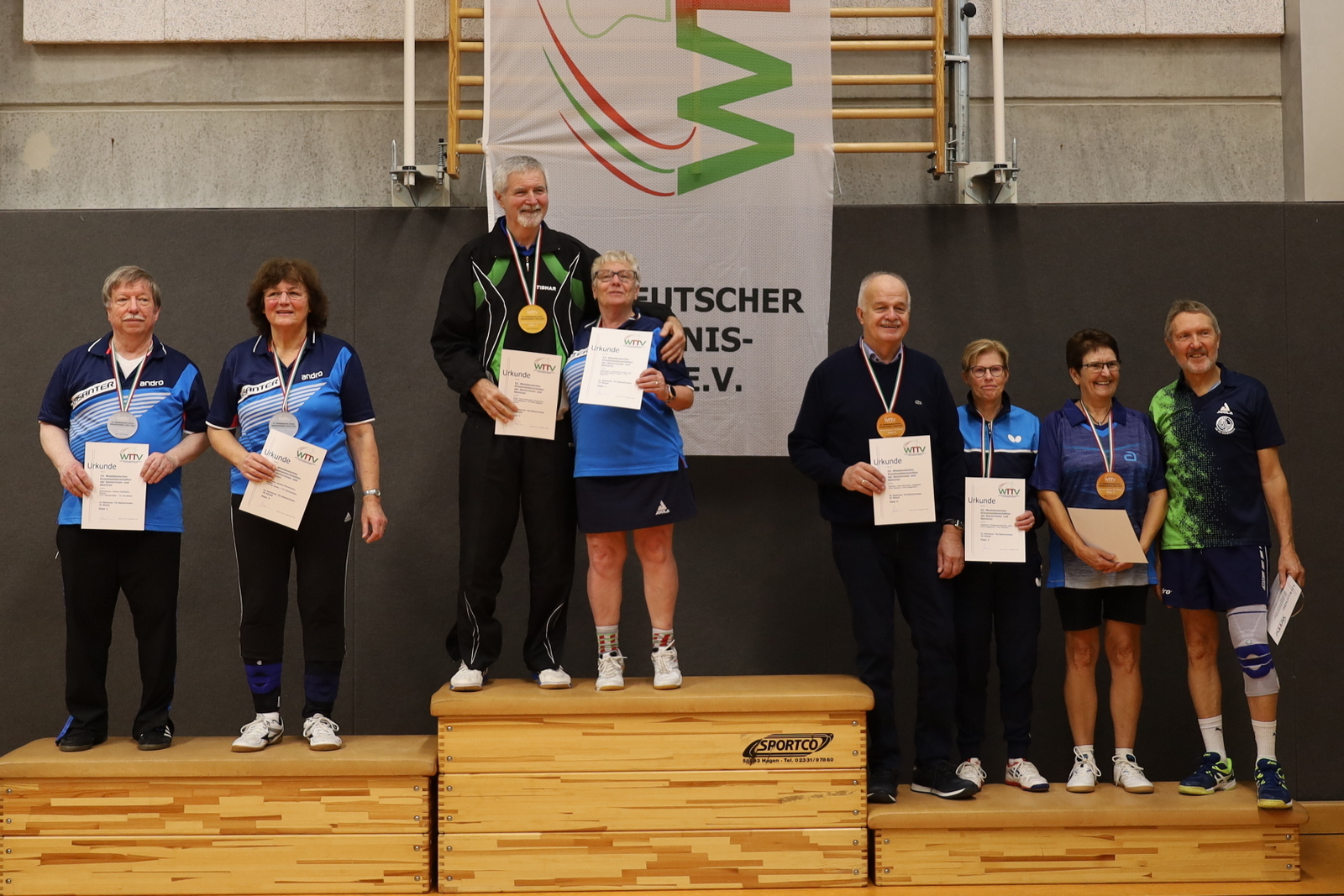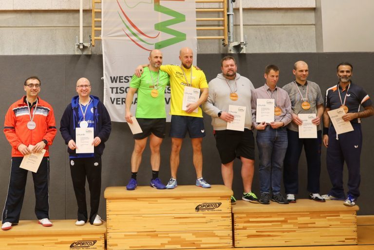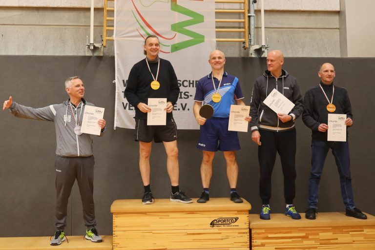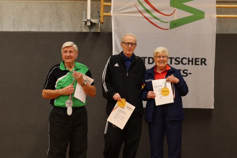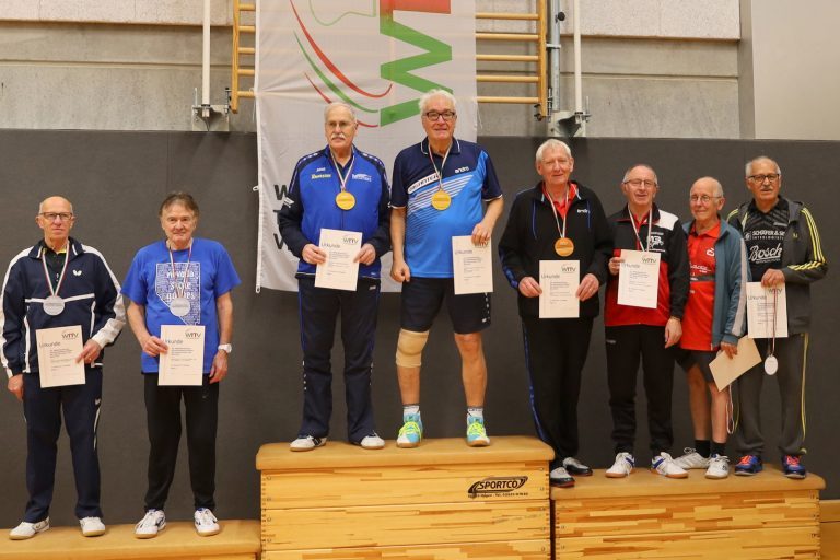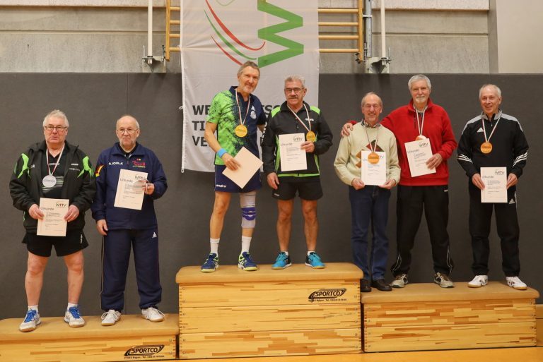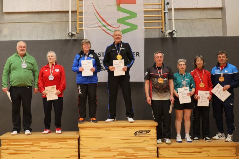 Nachdem viele Einschränkungen wegen der Corona-Pandemie aufgehoben wurden, konnten die Meisterschaften jetzt wieder als Großveranstaltung angeboten werden. Der TTC GW Bad Hamm bot den angereisten Seniorinnen und Senioren mit den zwei Hallen an der Friedensschule in Hamm gute Bedingungen. Die 298 Teilnehmerinnen und Teilnehmer trugen ihre Wettbewerbe in 10 Altersklassen und dazu in Einzel, Doppel und Mixed aus. 1251 Spiele waren erforderlich, um die Titelträger, Medaillengewinner und Nominierungen zur DM zu ermitteln.