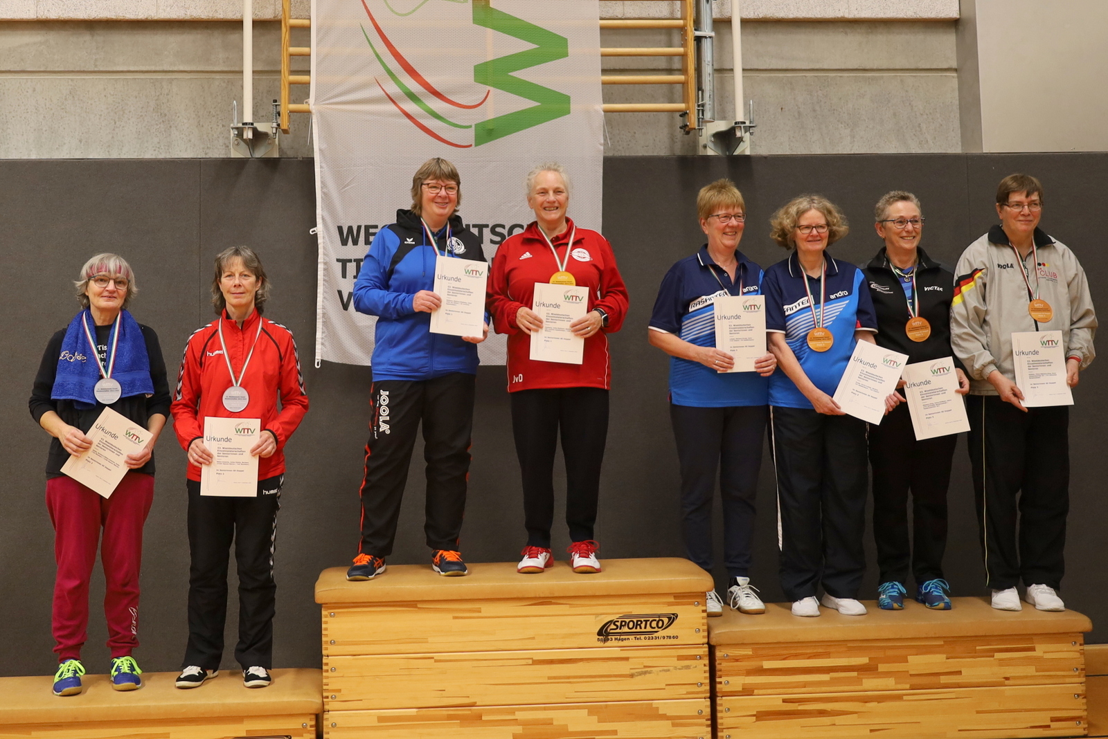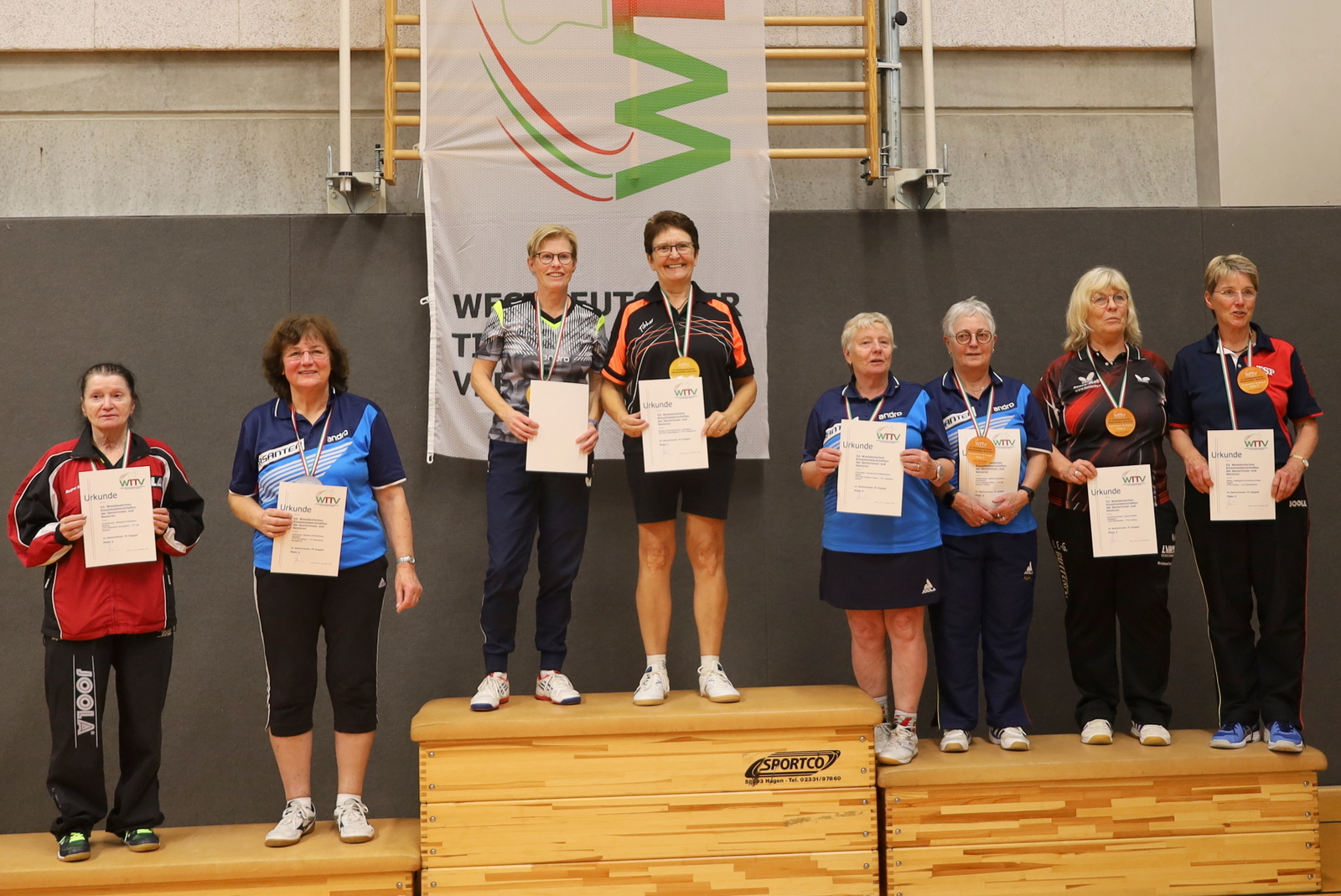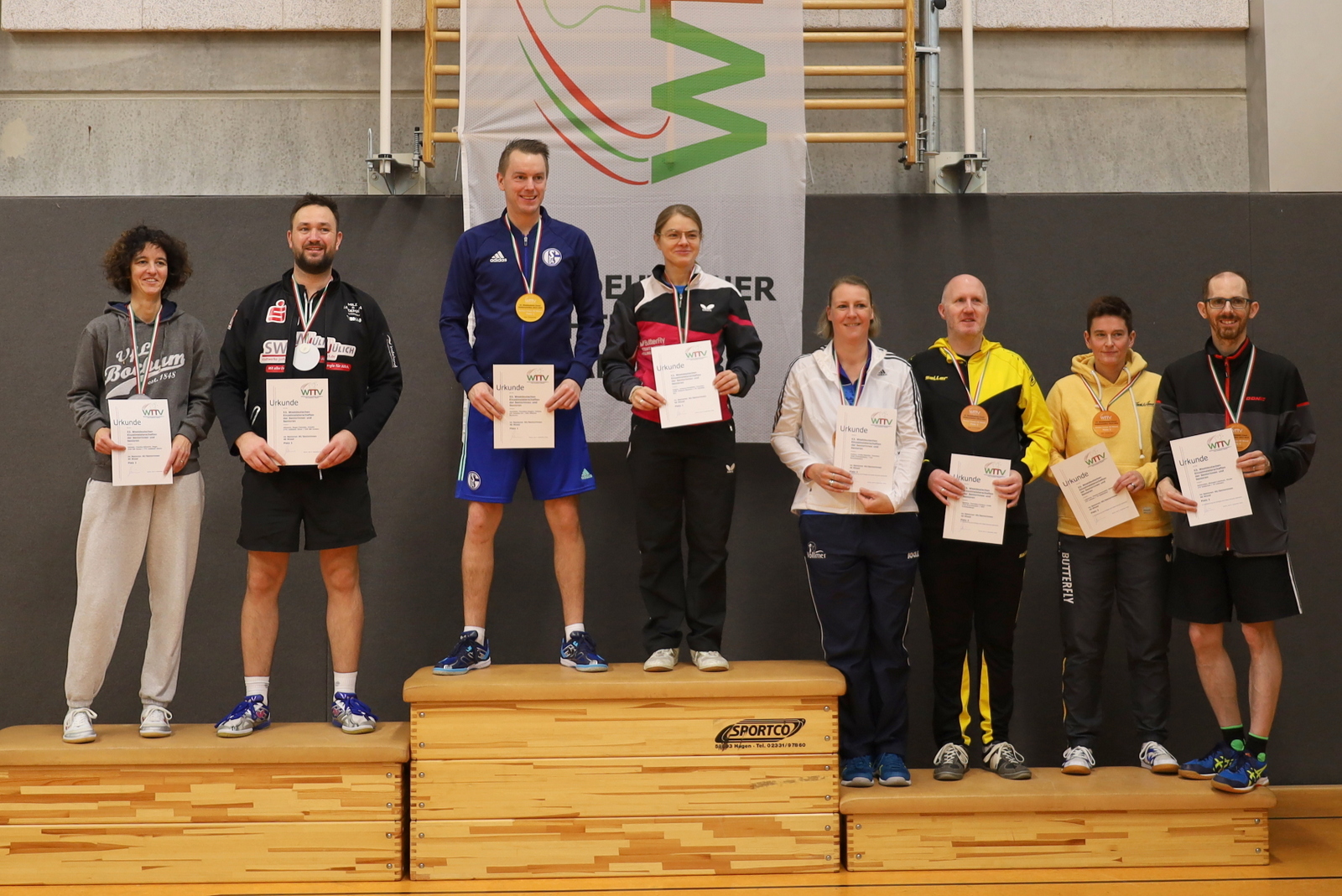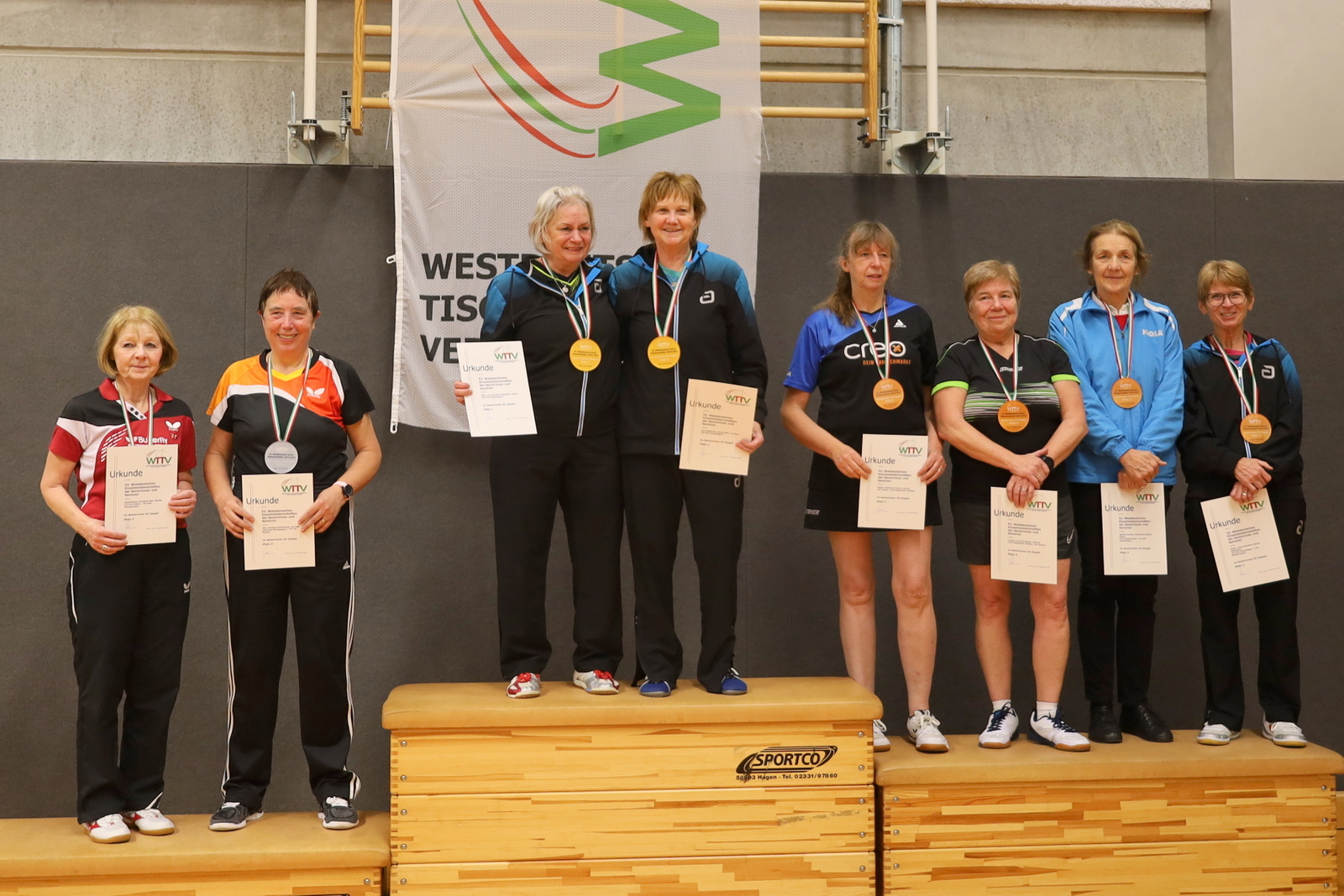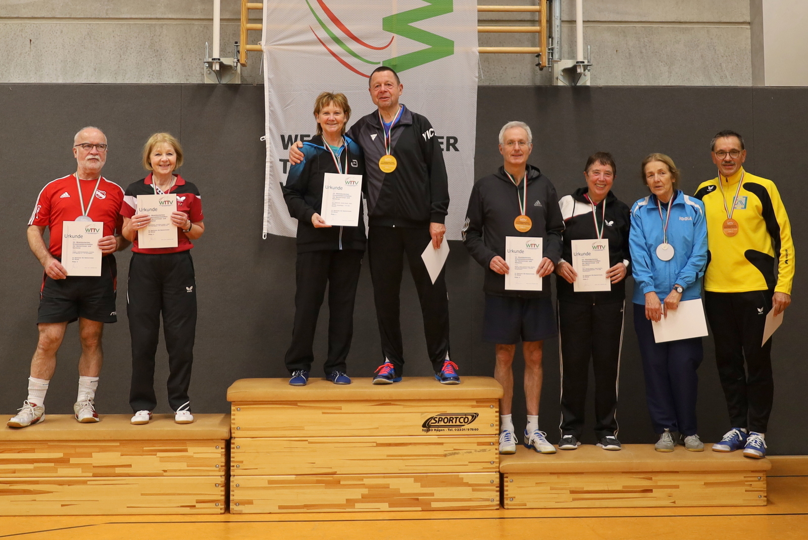 Nachdem viele Einschränkungen wegen der Corona-Pandemie aufgehoben wurden, konnten die Meisterschaften jetzt wieder als Großveranstaltung angeboten werden. Der TTC GW Bad Hamm bot den angereisten Seniorinnen und Senioren mit den zwei Hallen an der Friedensschule in Hamm gute Bedingungen. Die 298 Teilnehmerinnen und Teilnehmer trugen ihre Wettbewerbe in 10 Altersklassen und dazu in Einzel, Doppel und Mixed aus. 1251 Spiele waren erforderlich, um die Titelträger, Medaillengewinner und Nominierungen zur DM zu ermitteln.