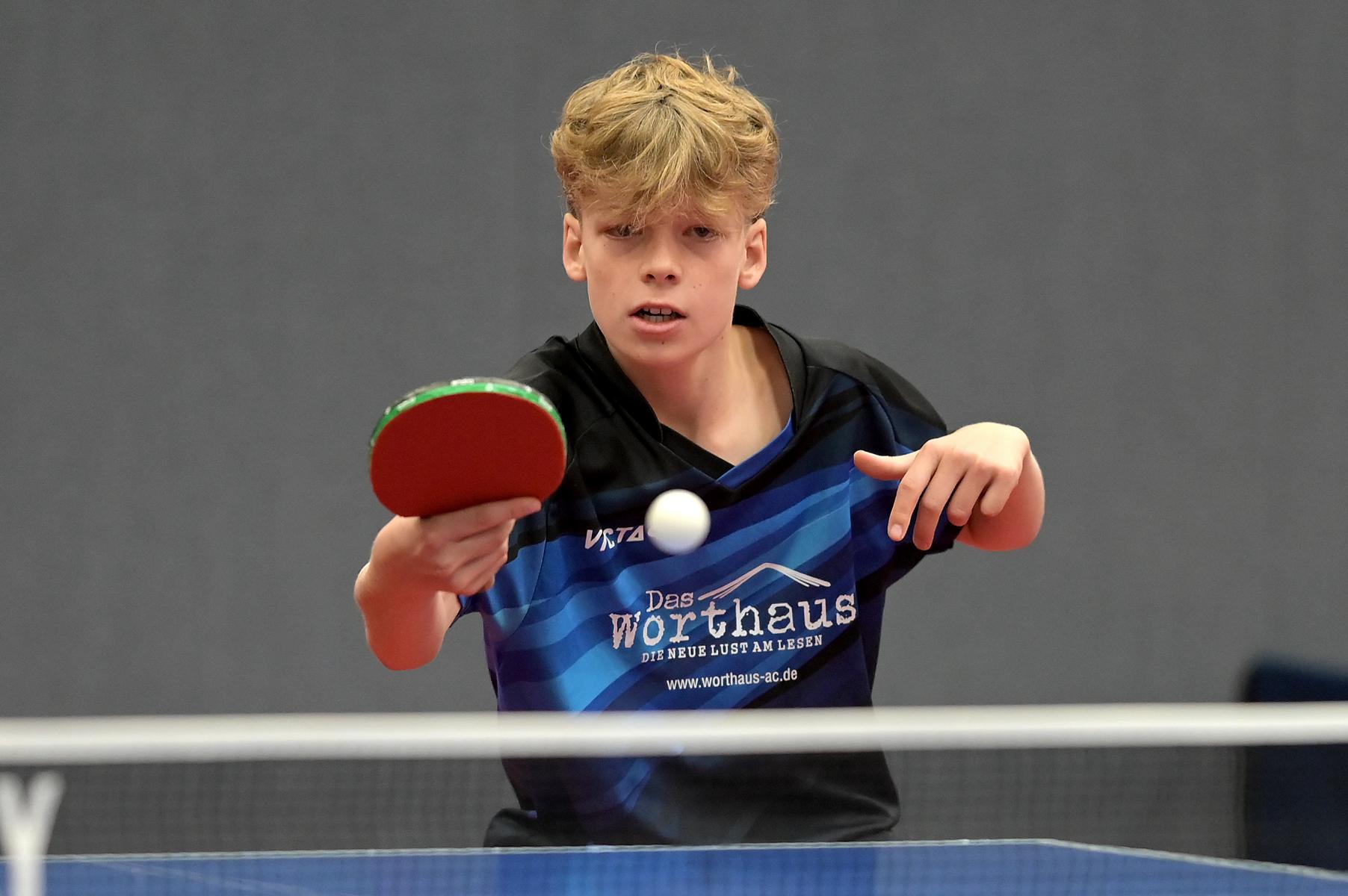 Einen besonders starken Eindruck machte von Anfang an der jüngste Teilnehmer, Dorian Lleriau (Borussia Düsseldorf). Er blieb in der Gruppenphase noch ohne Niederlage und konnte erst in der Hauptrunde von Sebastian Lenz (Tus Hiltrup) und Tom Henseler (Borussia Düsseldorf) bezwungen werden. Dennoch reichte seine 5:2 Bilanz am Ende für den Gesamtsieg, weil er aufgrund besserer Sätze gegen den spielgleichen Sebastian Lenz das bessere Satzverhältnis hatte.