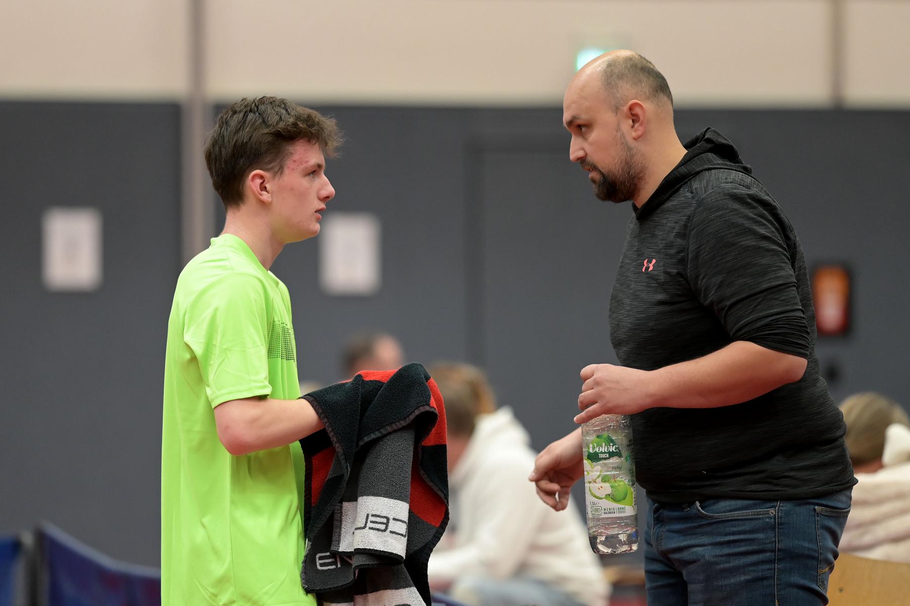 Das soll die Leistung und das Auftreten von Sebastian aber in keiner Weise schmälern. Sebastian kämpfte sich mit 3:2 durch die Vorrunde und war dann in der Hauptrunde ohne Niederlage. Seine Vorrundenniederlagen nahm er leider mit. Auch Tom Henseler spielte ein tolles Turnier und konnte den beiden Spielern vor ihm Niederlagen beibringen. Tom verlor dafür leider gegen Stockmann (Spvgg. Meiderich), Schüller (Borussia Düsseldorf) und Brykulski (1. FC Köln).