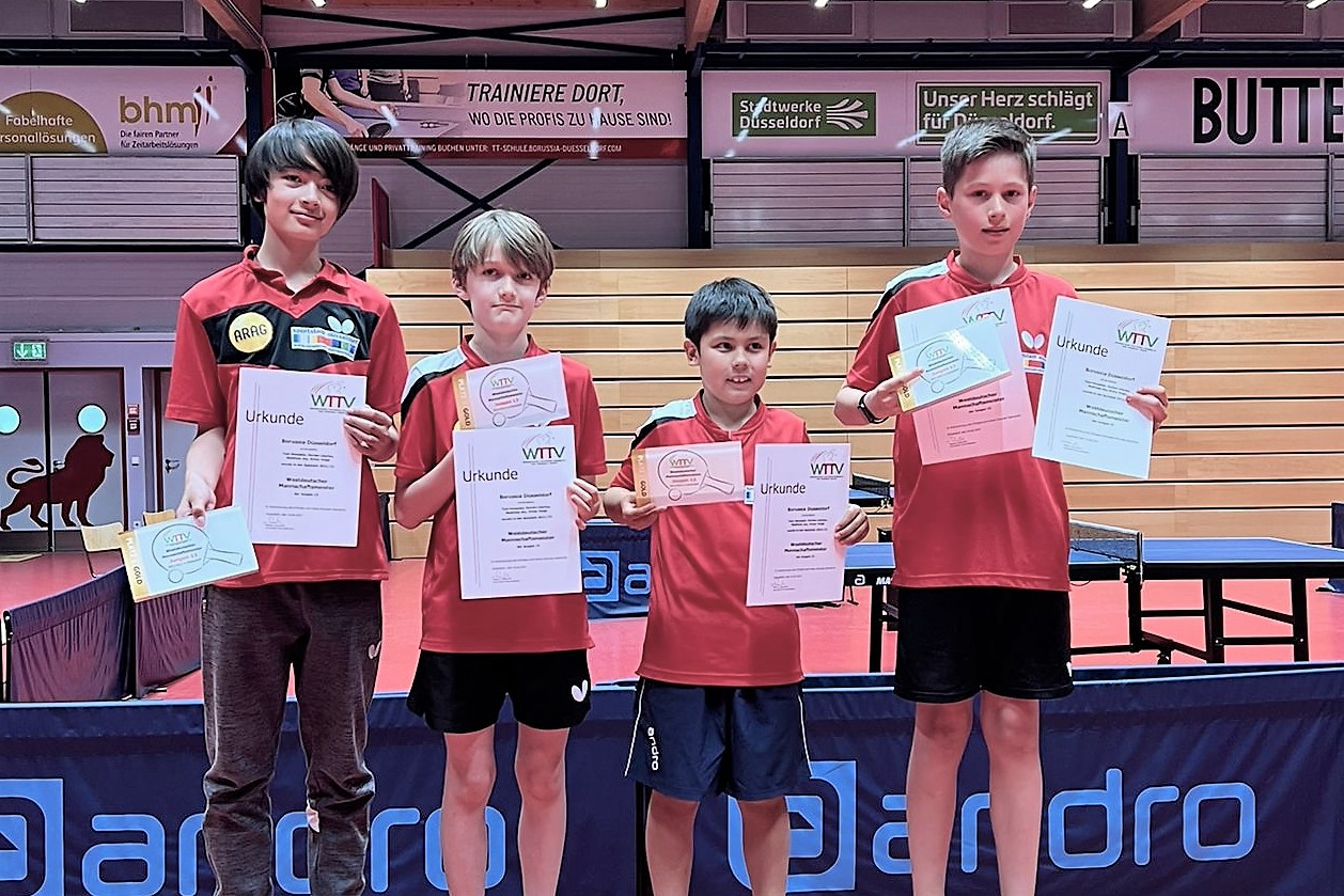 Bei den Westdeutschen Mannschaftsmeisterschaften der Jugend 13 feierte Borussia Düsseldorf einen Doppelerfolg! Sowohl das Mädchen-Team mit Rhea Zhu Chen, Greta Bögershausen, Emma Li, Sarah Reuter und Sofiia Zhumodenko als auch die Jungen-Mannschaft mit Tom Henseler, Dorian Lheriau, Matthias Jax und Victor Voigt holten sich den Titel. Herzlichen Glückwunsch!
